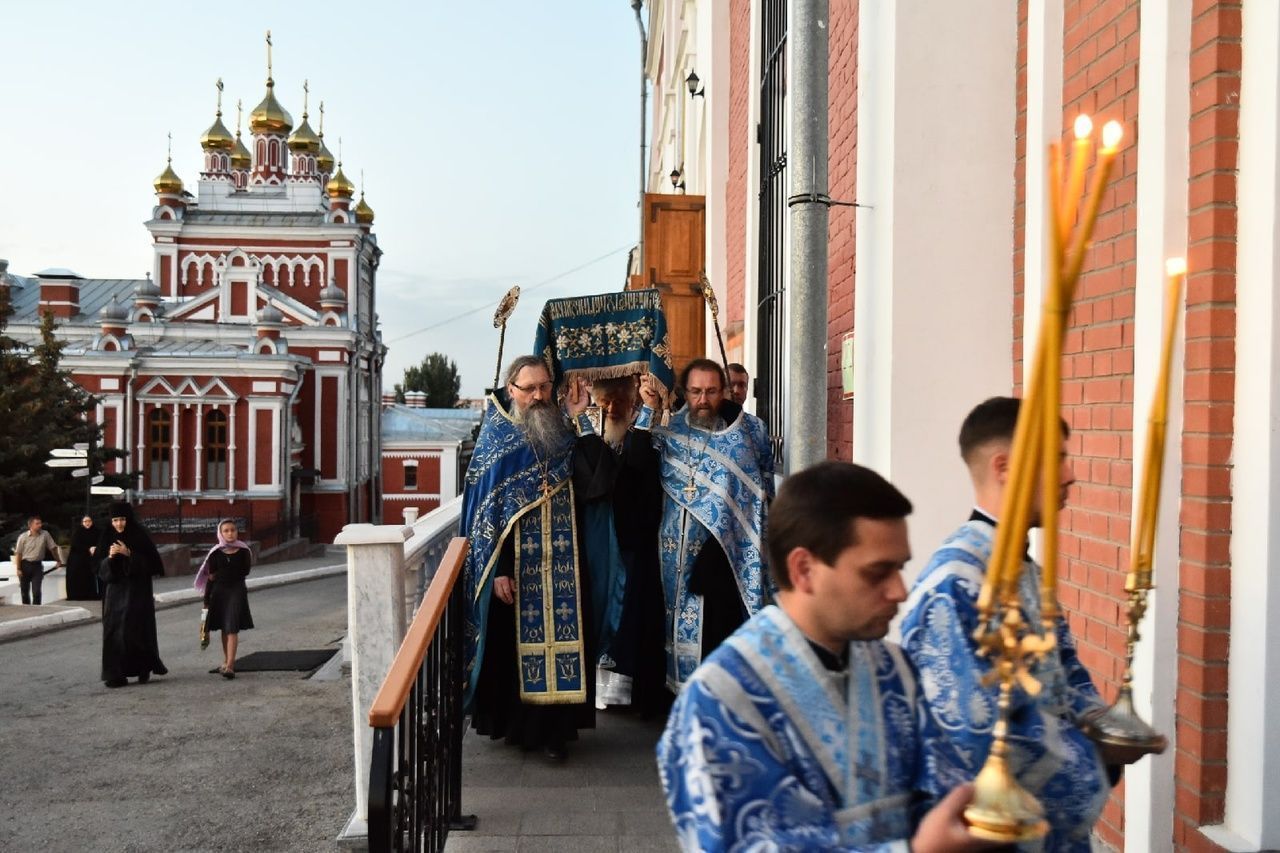 Вечером 30 августа 2022 года митрополит Самарский и Новокуйбышевский Сергий совершил всенощное бдение и чин погребения плащаницы Божией Матери в Иверском женском монастыре города Самары.