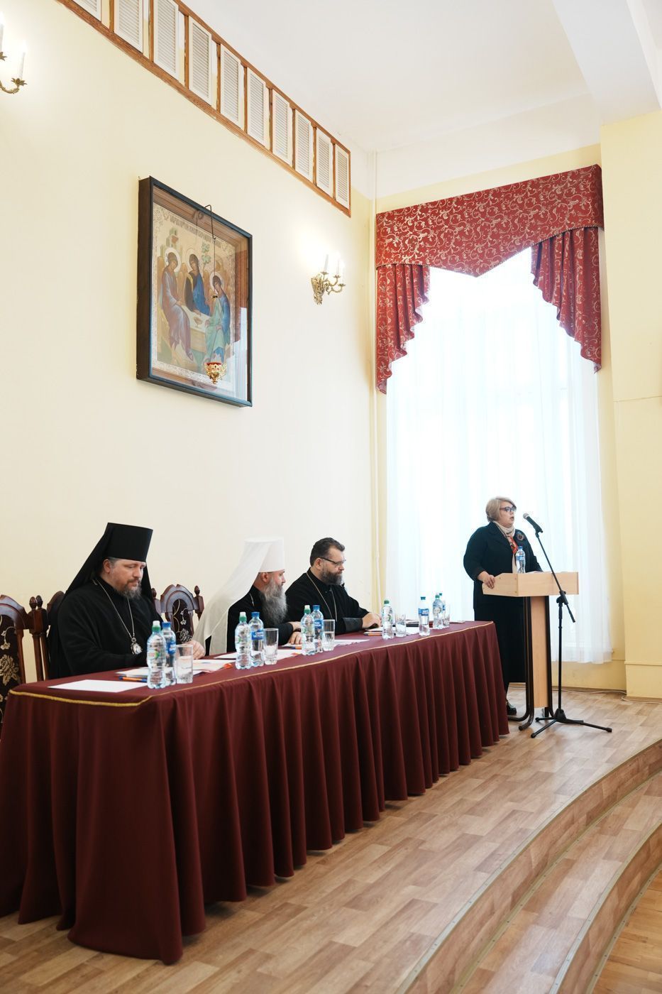 Конференция проходила сразу в четырех секциях: «Православная педагогика и психология в духовных школах». Круглый стол по обмену опытом; «Преподавание православно-ориентированных дисциплин в вузах»; «Преподавание учебного курса «Нравственные основы семейной жизни»: проблемы и пути решения»; «Пастырская педагогика».