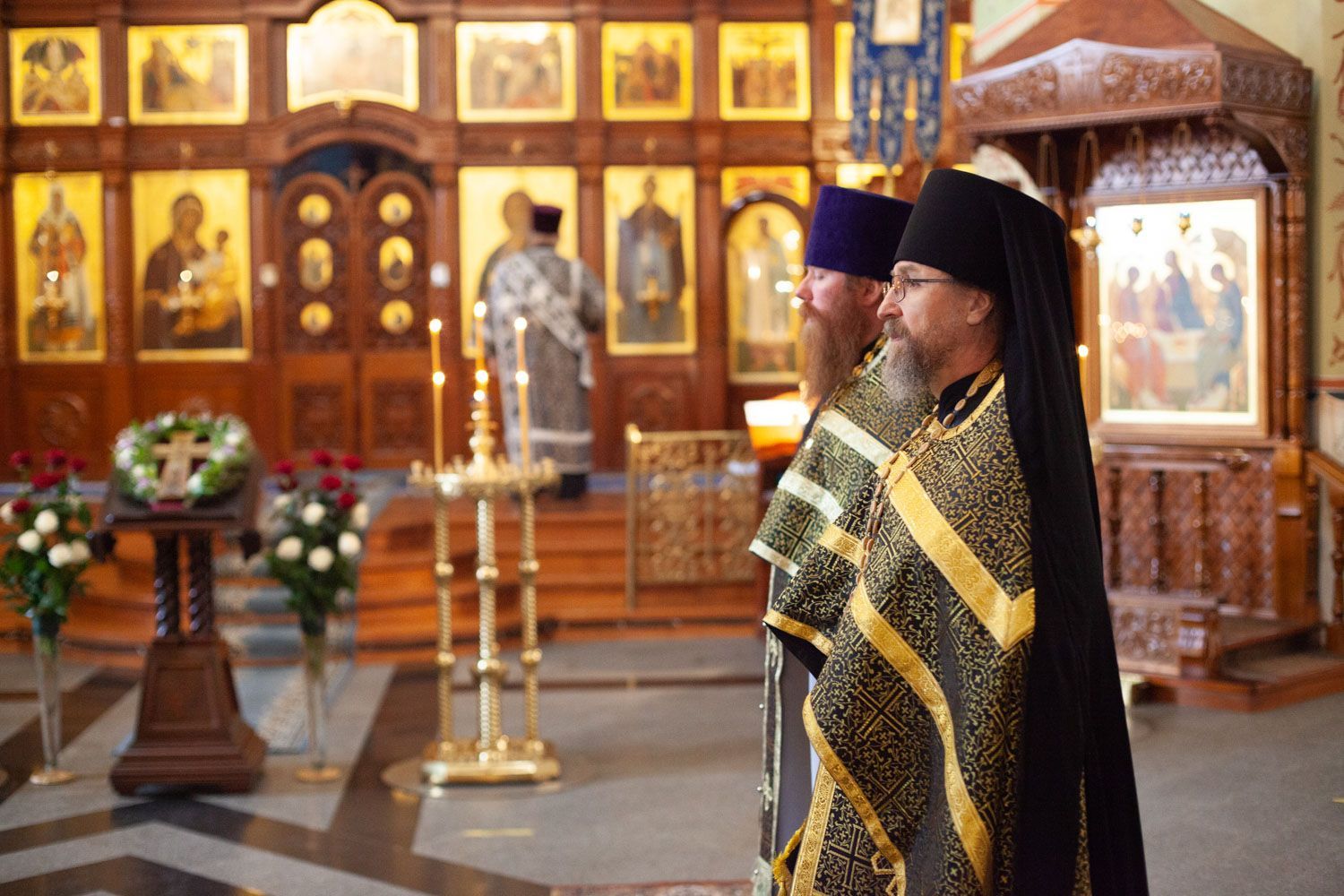 Его Высокопреосвященству сослужили клирики обители и иеромонах Никита (Корежин).