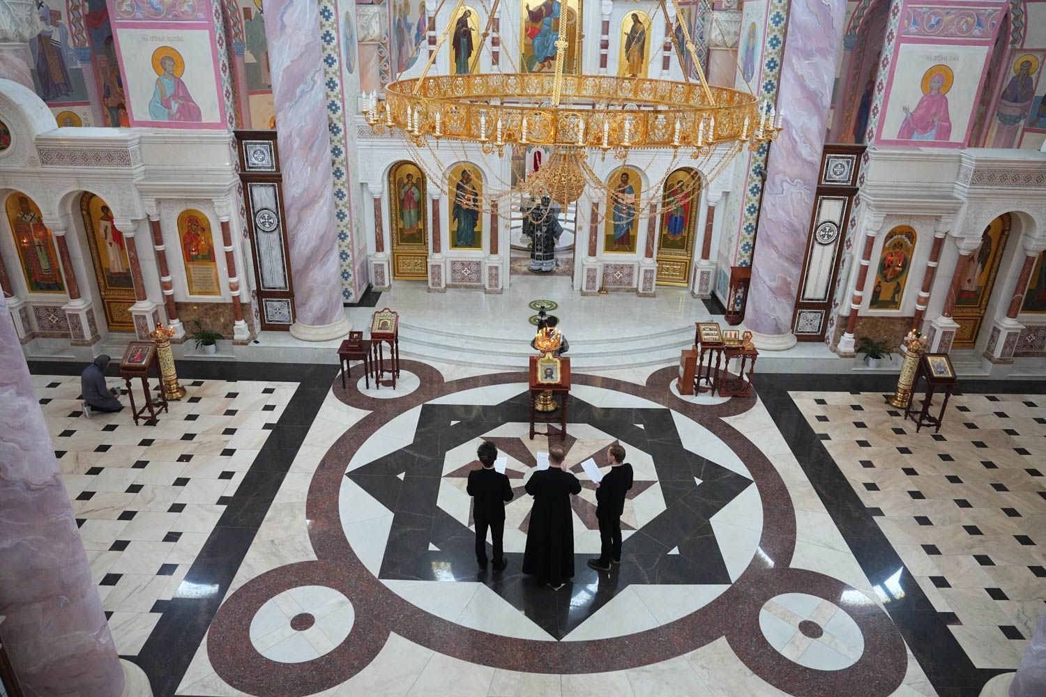 Песнопения литургии исполнил большой хор Софийского собора под управлением Анастасии Горбатенко. Песнопение "Да исправится молитва моя" исполнило трио студентов Самарской семинарии.