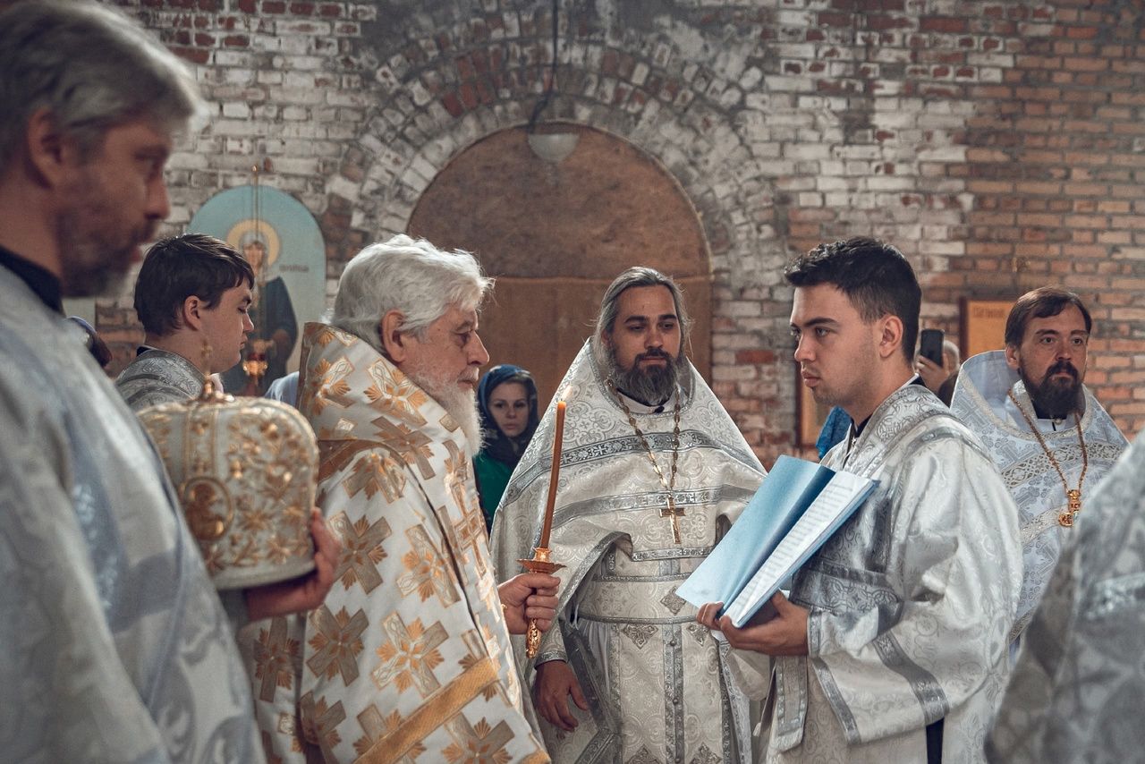 Митрополиту Сергию сослужили: архимандрит Вениамин (Лабутин), заведующий межвузовской кафедрой теологии и истории религий; иерей Никита Семенов, настоятель храма в честь Владимирской иконы Божией Матери, иеромонах Никита (Корежин), личный секретарь митрополита, иеромонах Феодор (Будаев). Диаконский чин возглавил диакон Николай Трошков.