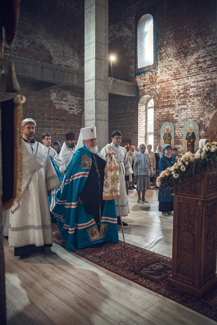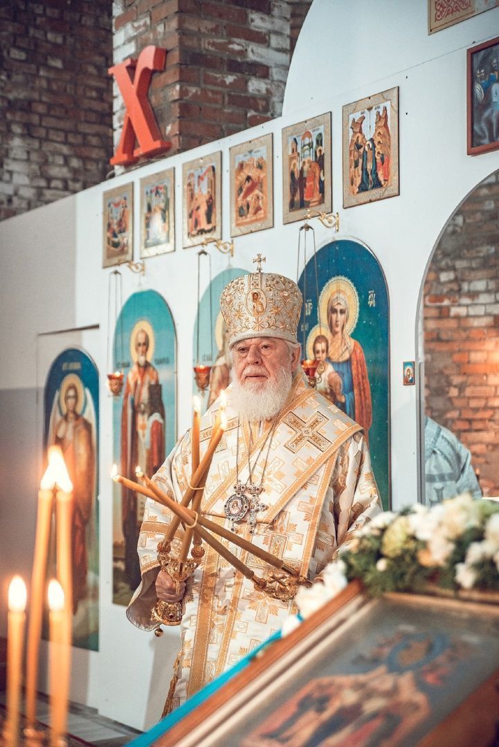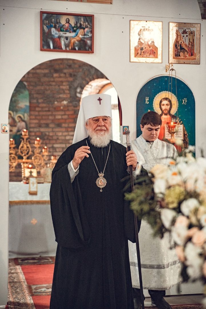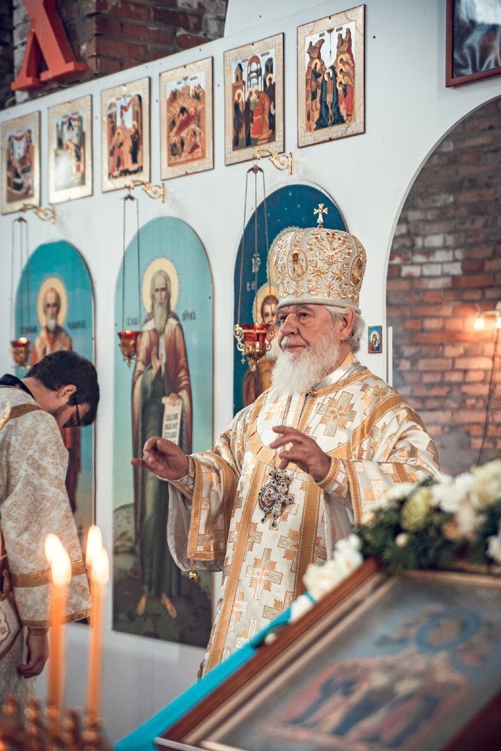 Настоятель храма иерей Никита тепло приветствовал владыку Сергия и преподнес Его Высокопреосвященству букет цветов. Затем митрополит Сергий, обратился к духовенству и прихожанам с архипастырским словом по случаю престольного праздника.