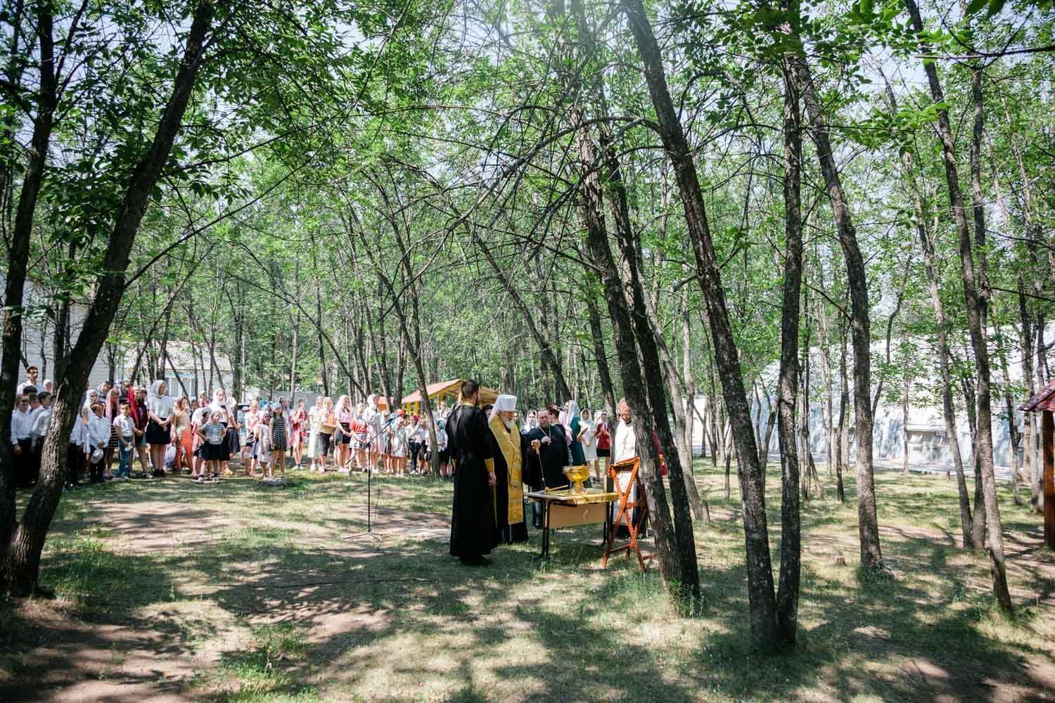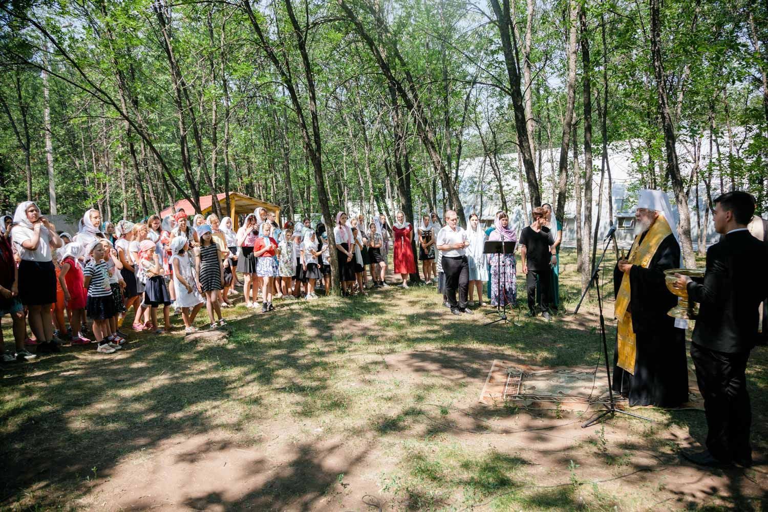В завершении был отслужен благодарственный молебен, далее владыка Сергий благословил детей и вручил книги, а также сладкие подарки. А дети в свою очередь исполнили для Архипастыря несколько новых песен, которые успели разучить за первую неделю хоровой смены.