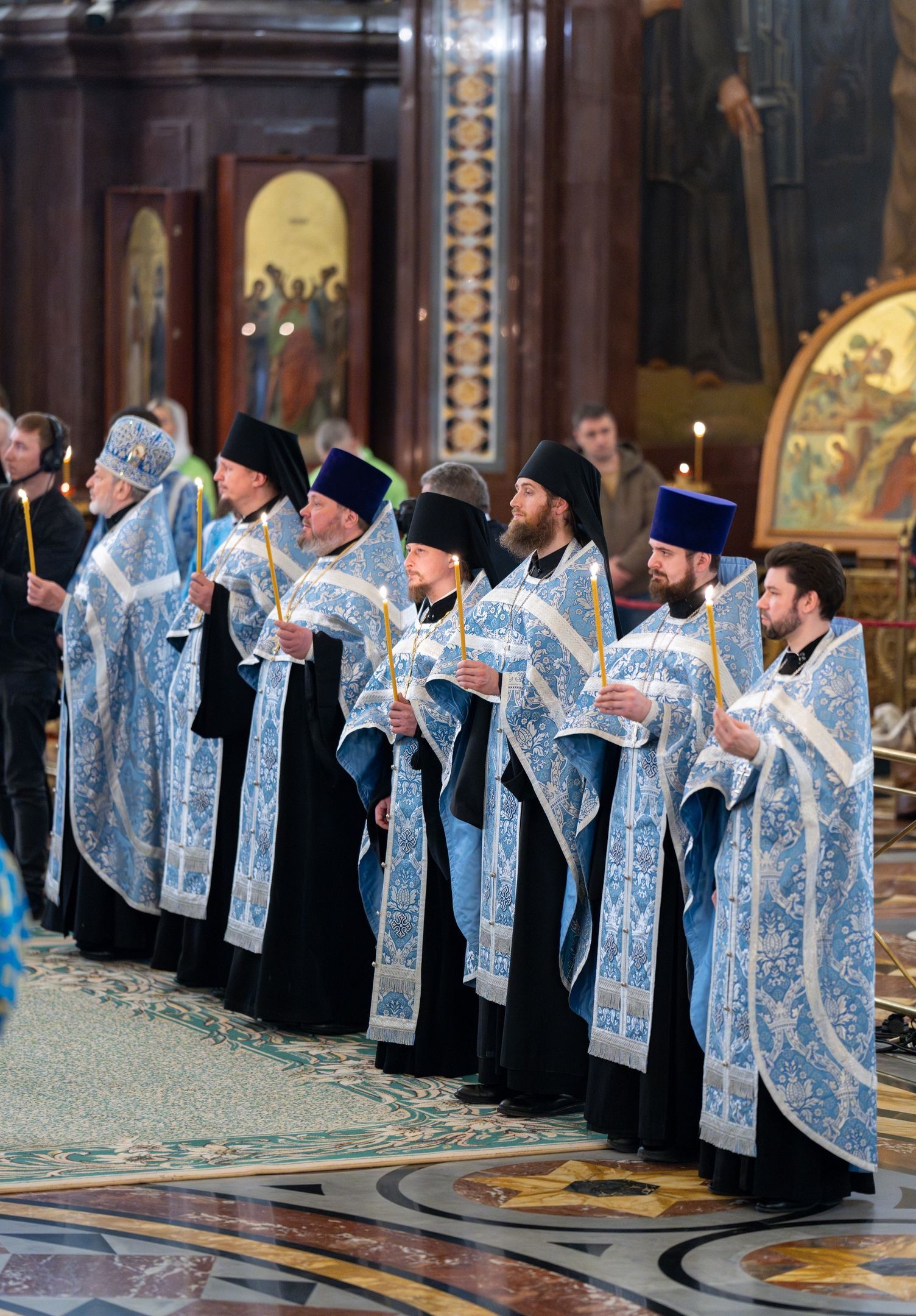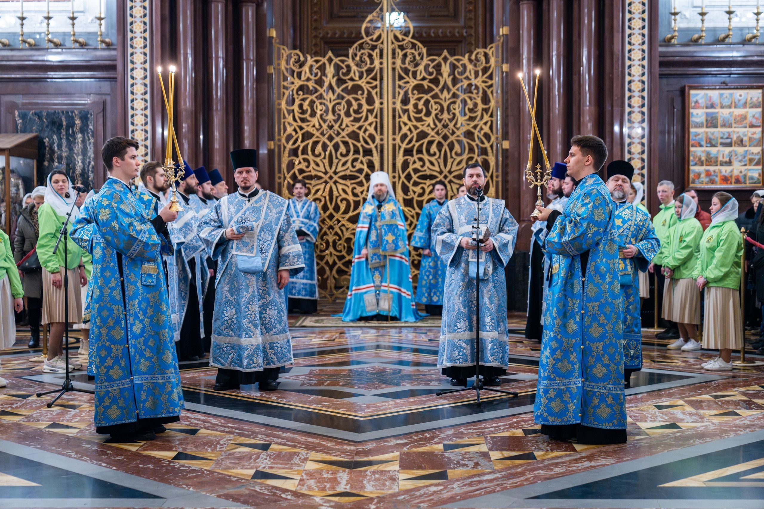 Богослужебные песнопения исполнили Патриарший и Камерный хоры Храма Христа Спасителя (регенты — И.Б. Толкачев и С.С. Сидоренко).