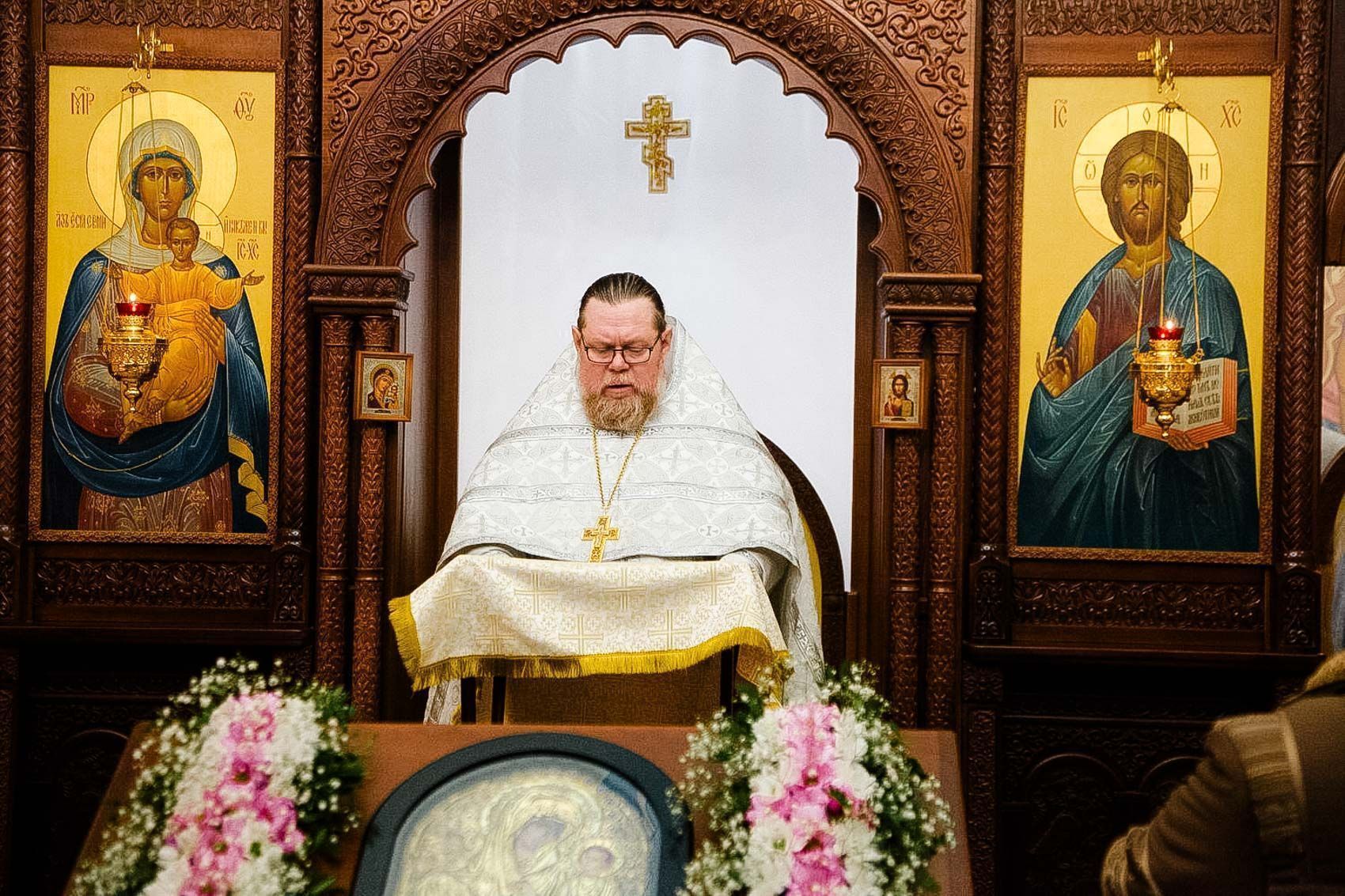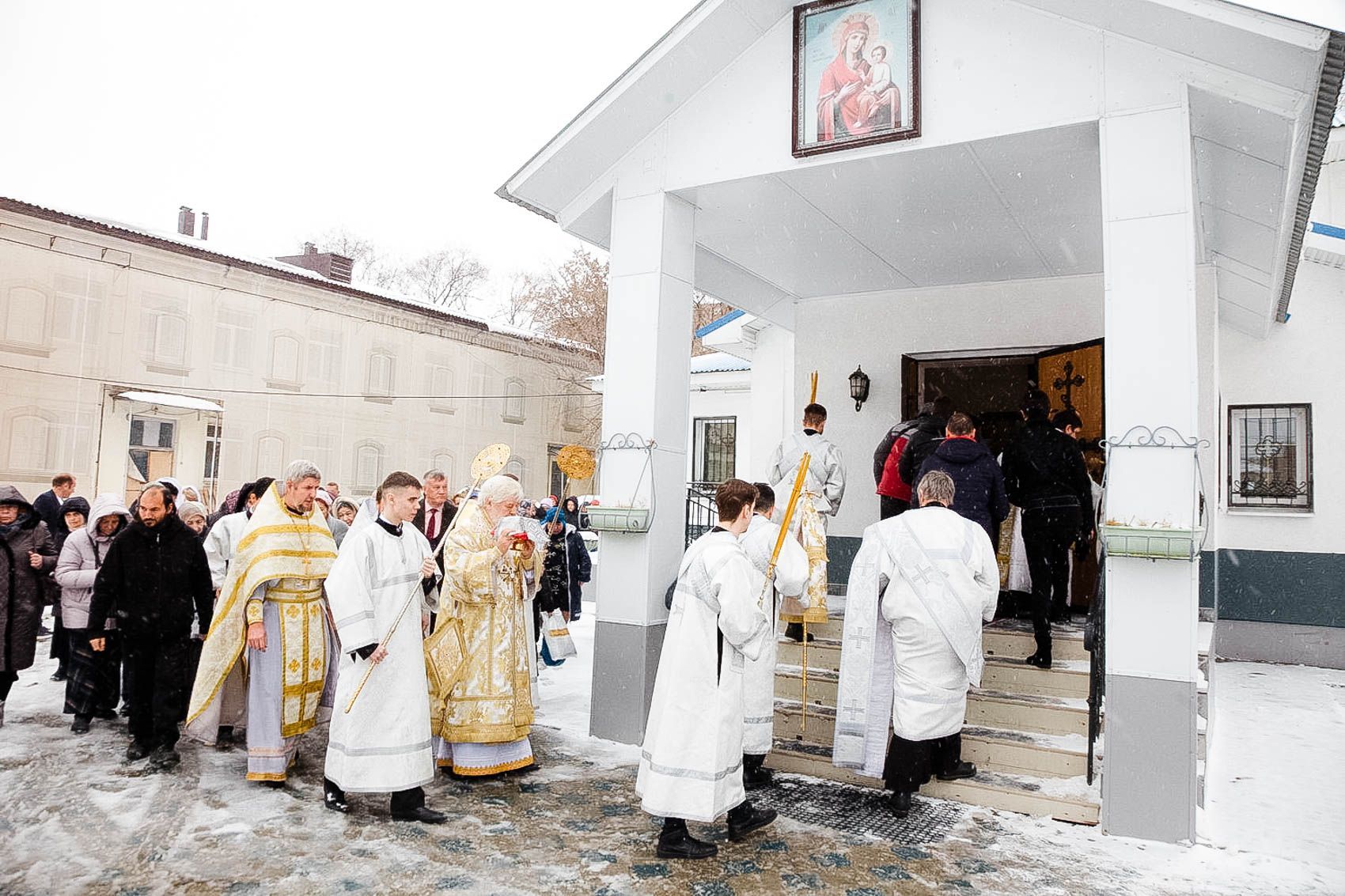 Было совершено славление перед иконой Божией Матери .