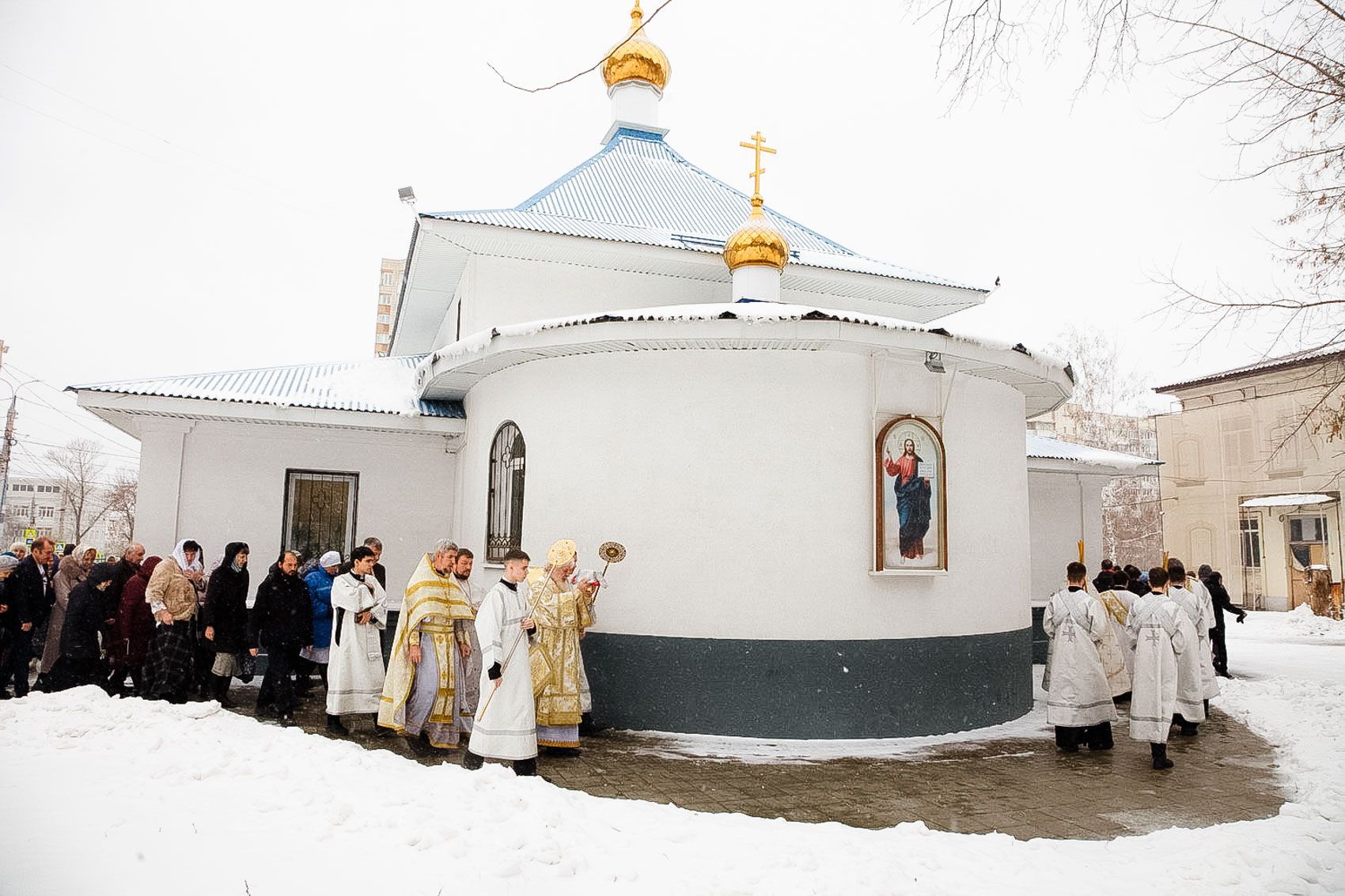 Его Высокопреосвященству сослужили: протоиерей Сергий Пушкарев, секретарь Самарской епархии;