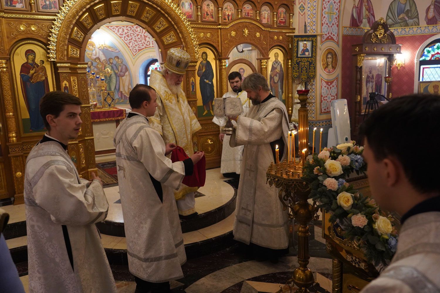 Богослужебные песнопения исполнили Губернский студенческий хор "София", регент игумен Никон (Ратников).