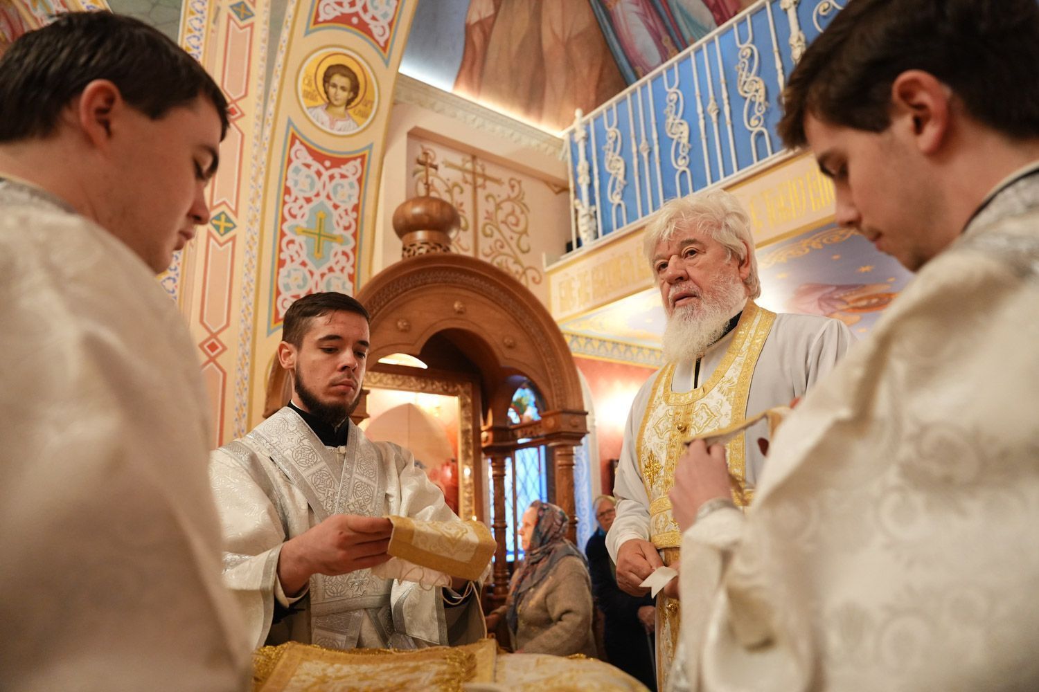 Его Высокопреосвященству сослужили: протоиерей Сергий Пушкарев, секретарь Самарской епархии;