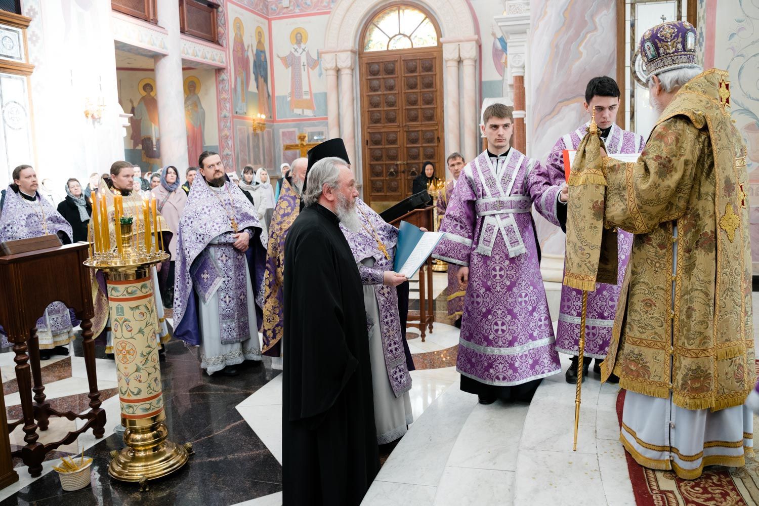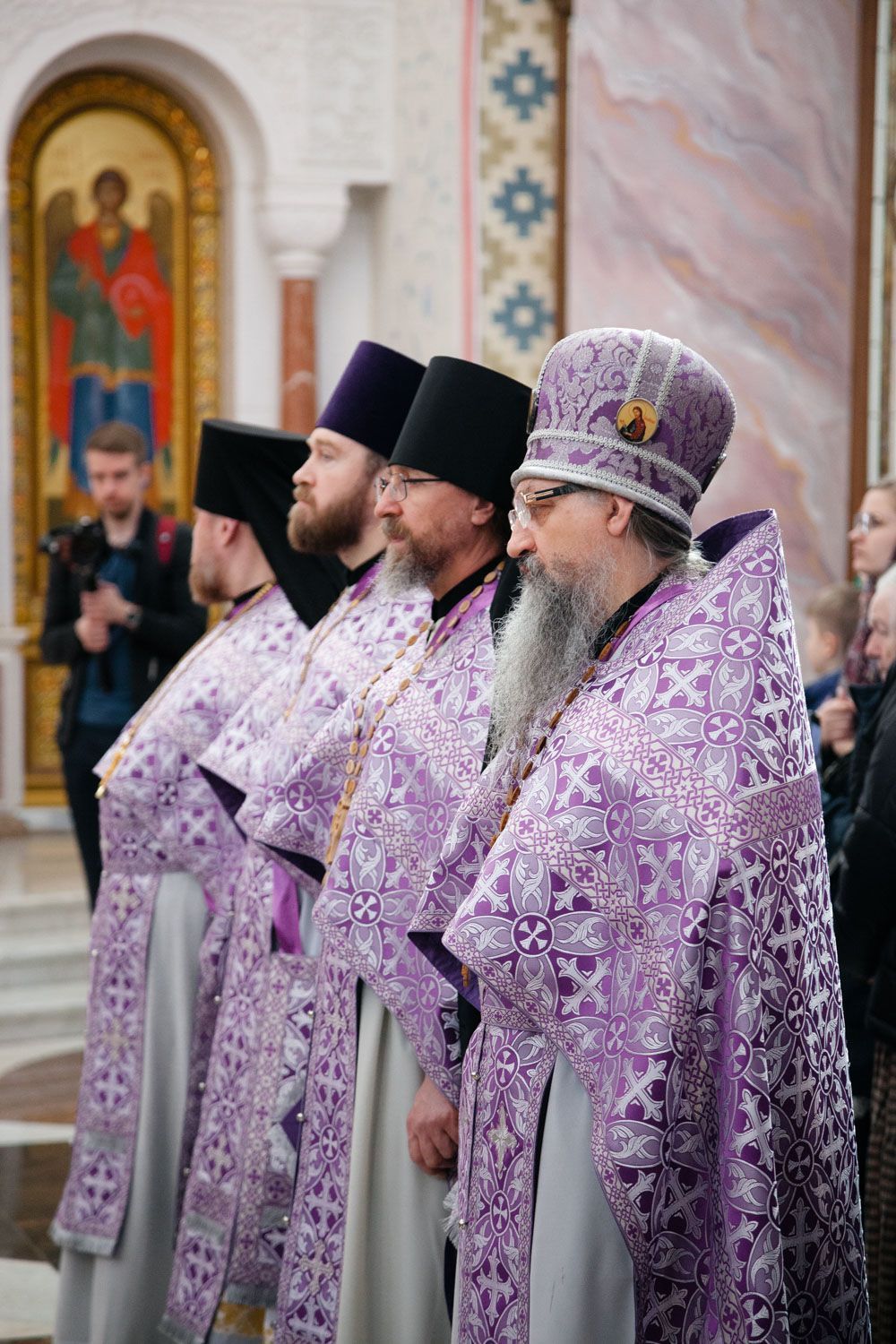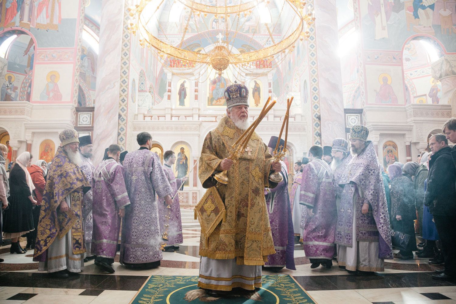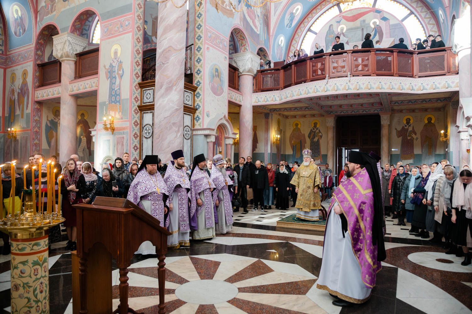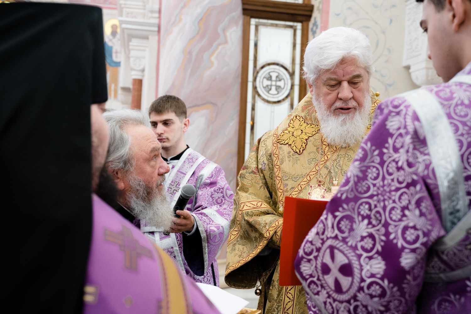 Богослужебные песнопения исполнили Архиерейский смешанный хор Софийского собора под управлением Анастасии Горбатенко и мужской губернский хор «София» под управлением игумена Никона (Ратникова).