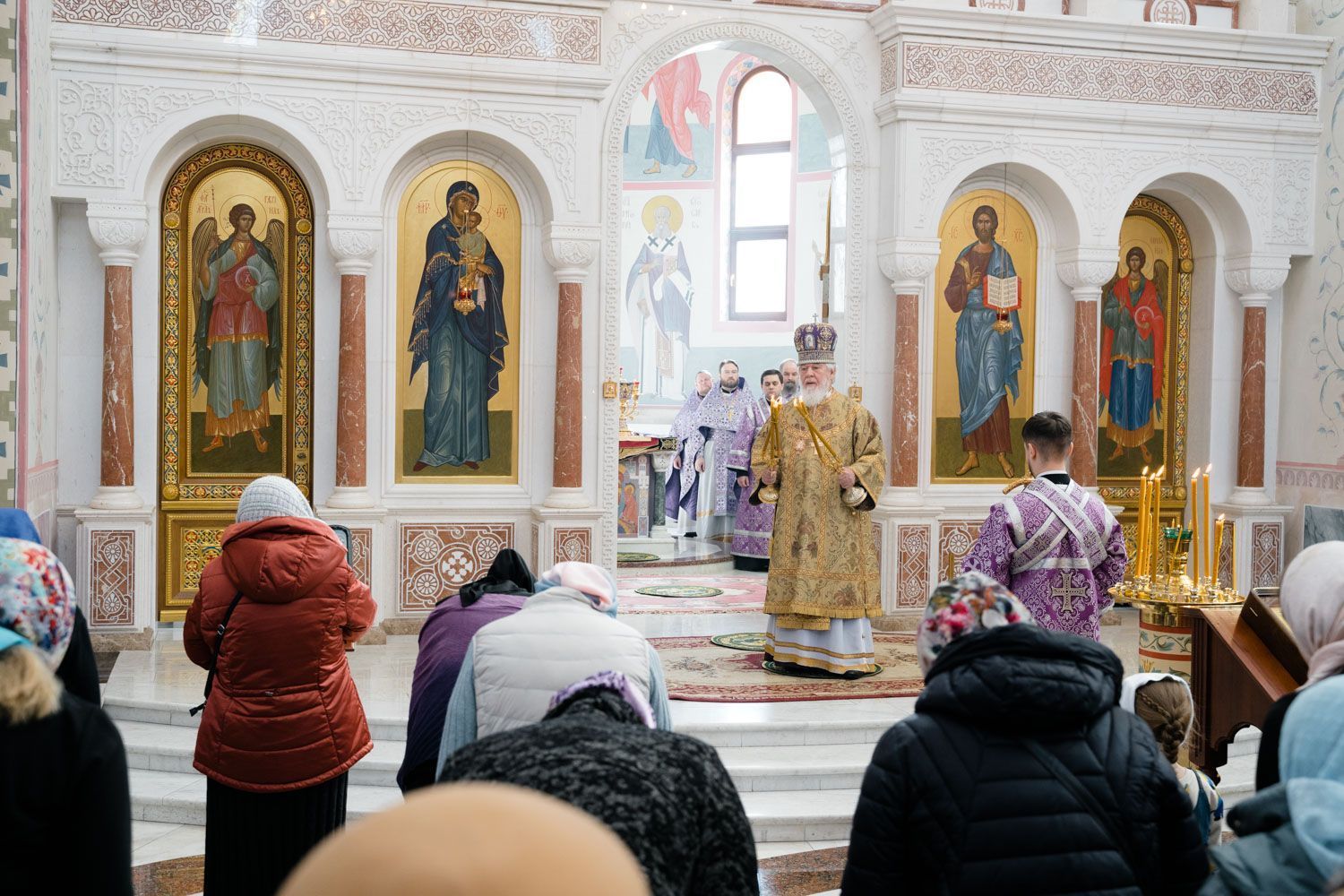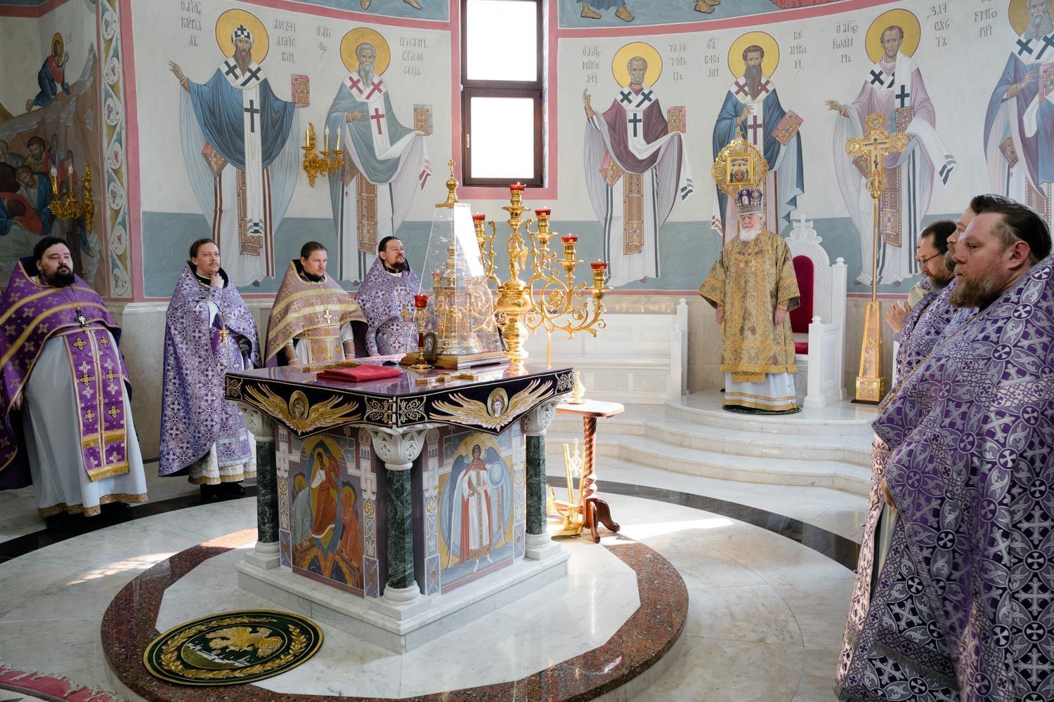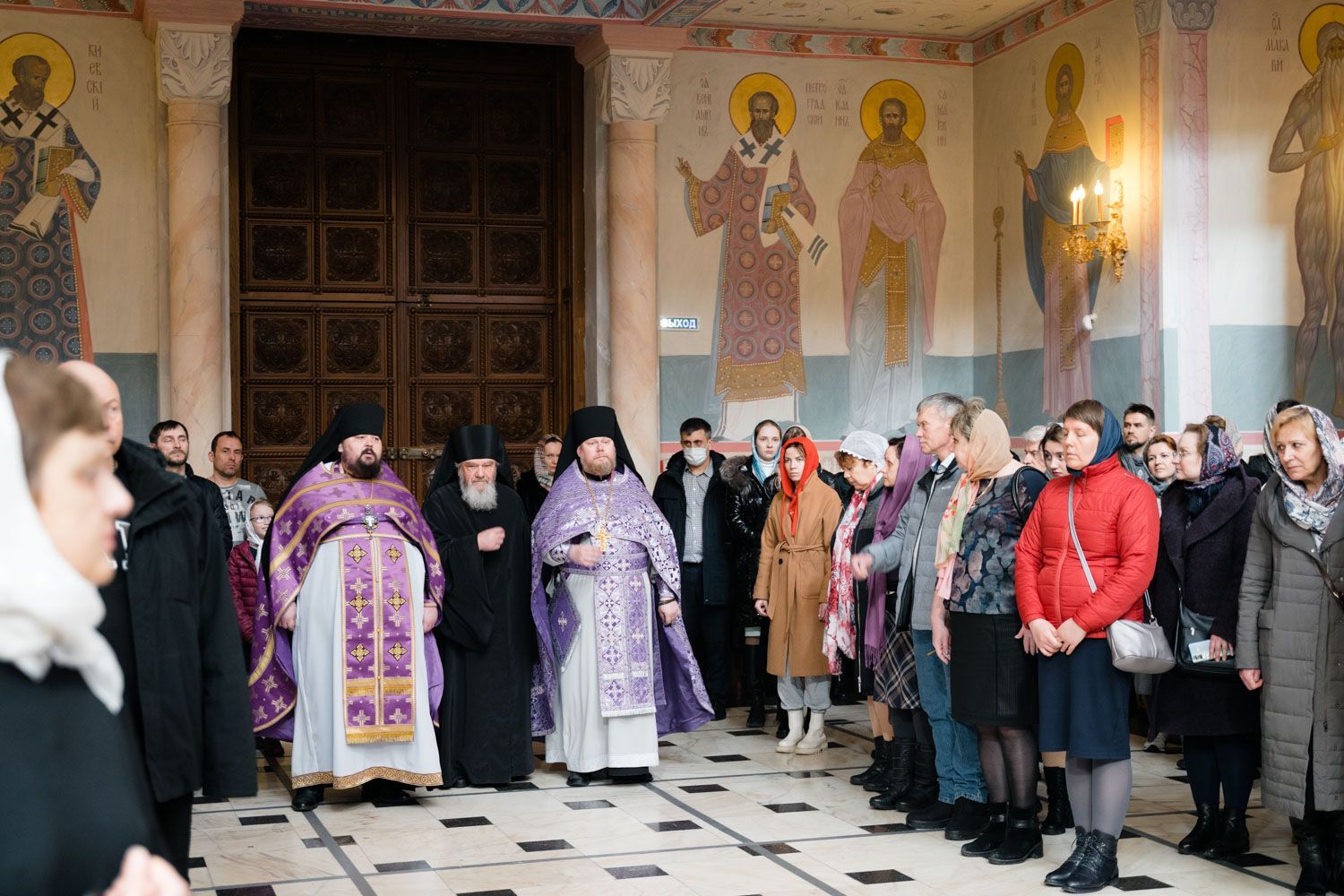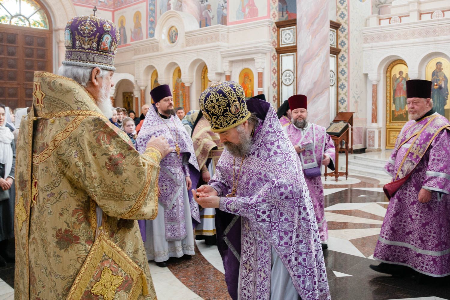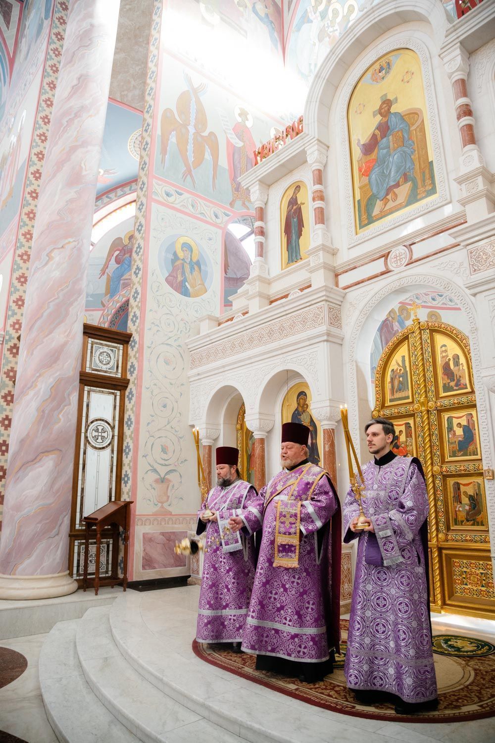 Богослужебные песнопения исполнили Архиерейский смешанный хор Софийского собора под управлением Анастасии Горбатенко и мужской губернский хор «София» под управлением игумена Никона (Ратникова).