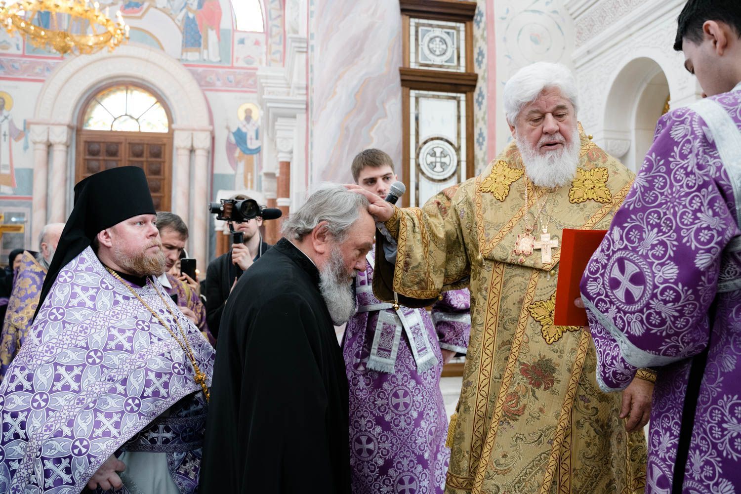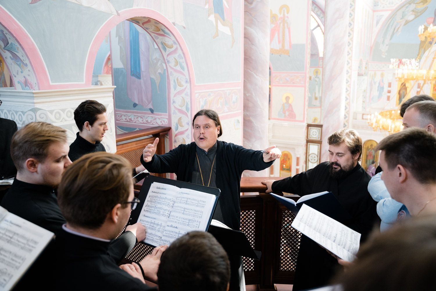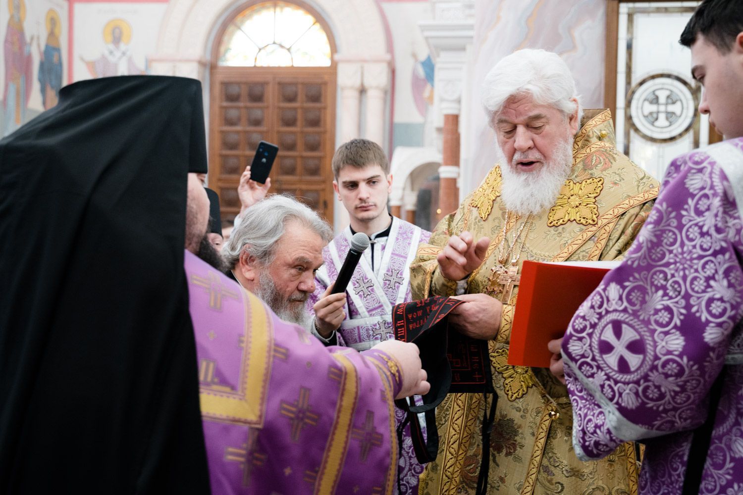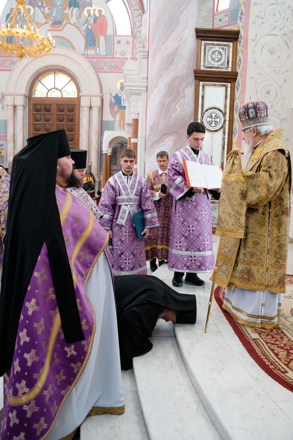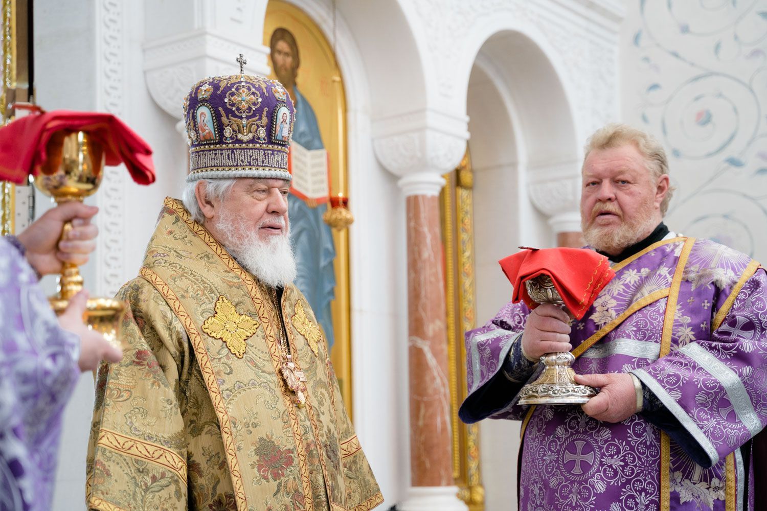 Богослужебные песнопения исполнили Архиерейский смешанный хор Софийского собора под управлением Анастасии Горбатенко и мужской губернский хор «София» под управлением игумена Никона (Ратникова).