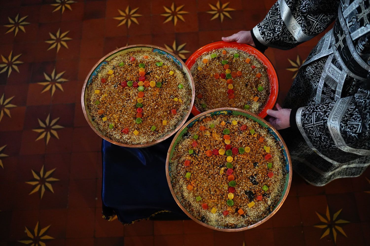 По окончании Литургии владыка возглавил молебное пение святому великомученику Феодору Тирону и освятил коливо.