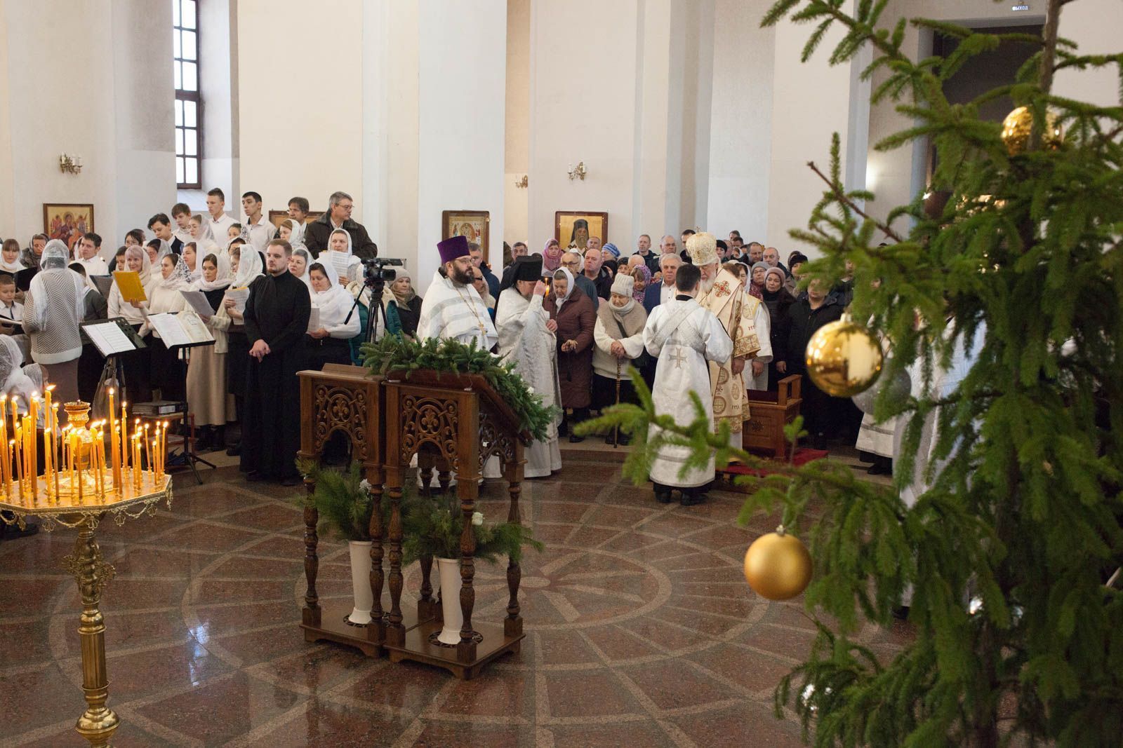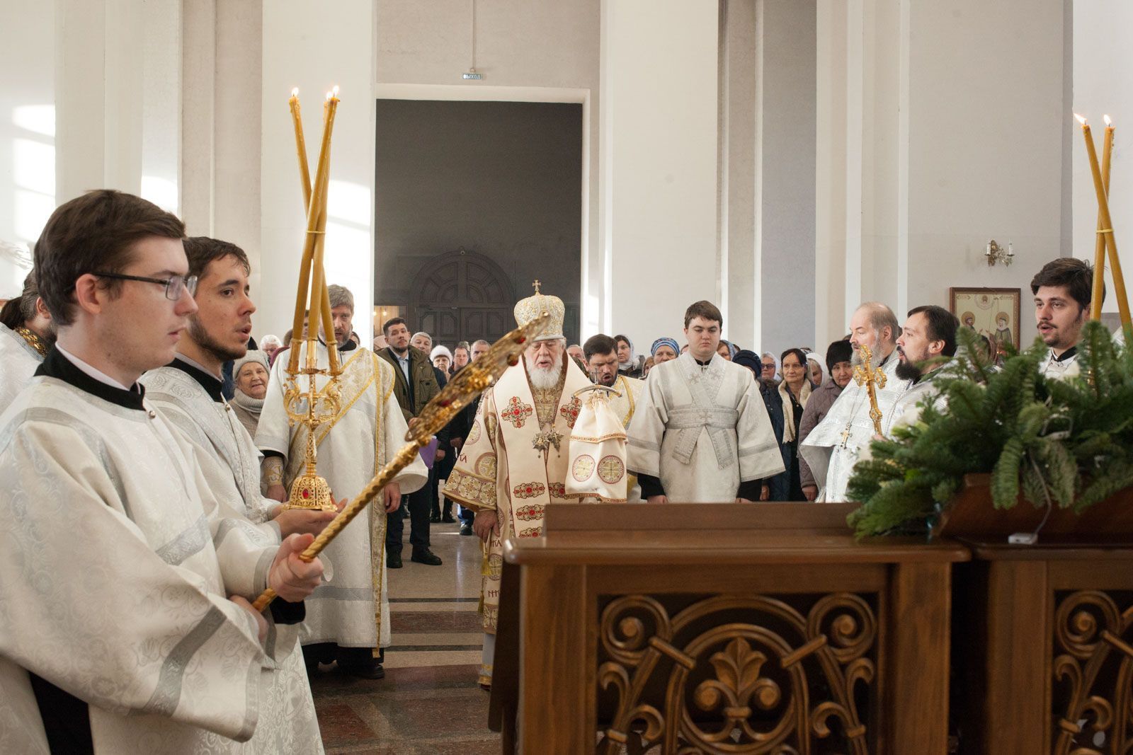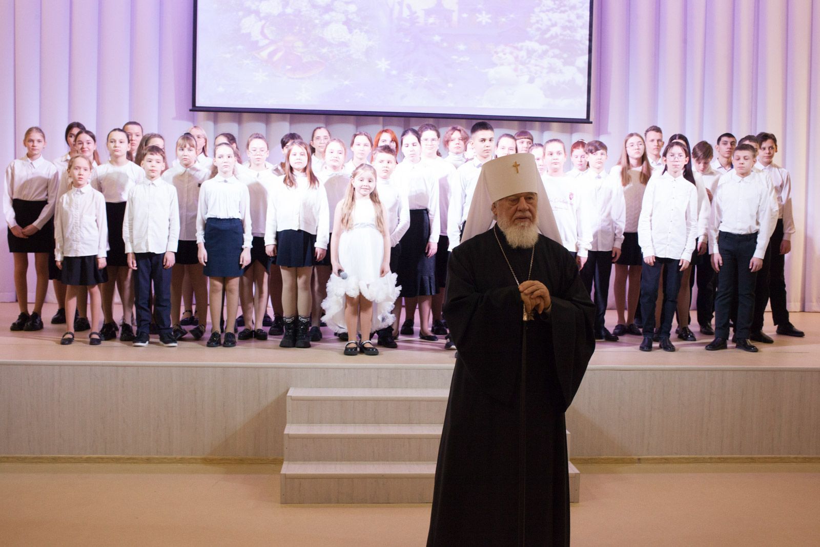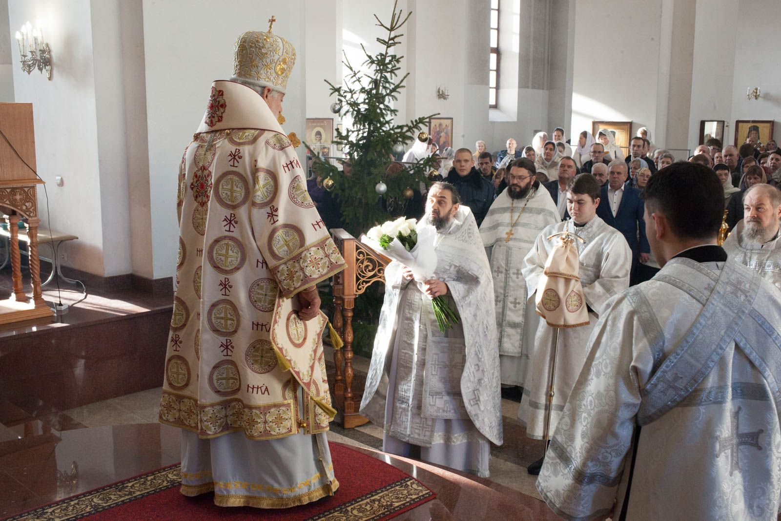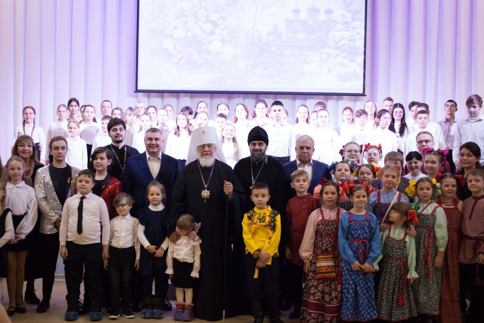 Митрополит Сергий высоко оценил труды настоятеля протоиерея Владимира Загаринского и поздравил детей с праздником Рождества Христова.