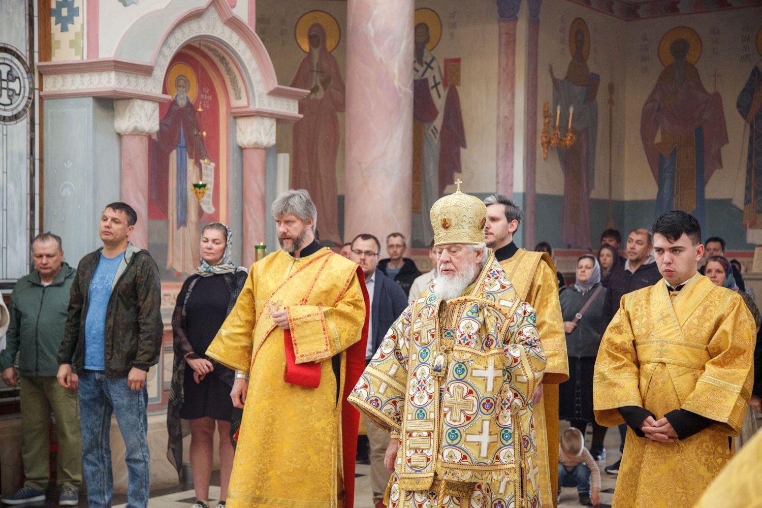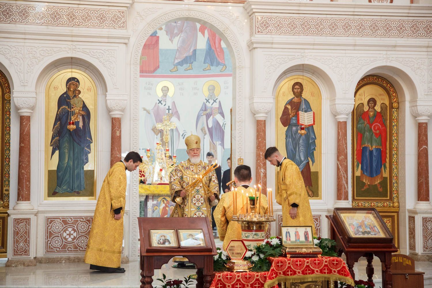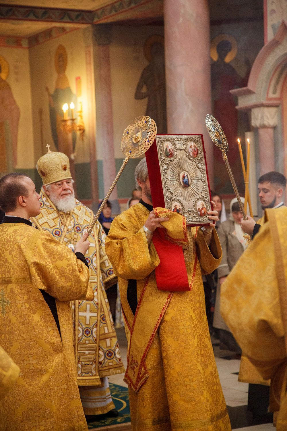По окончании Литургии митрополит Сергий совершил молебен у ковчега с частицей мощей великомученика Димитрия Солунского.