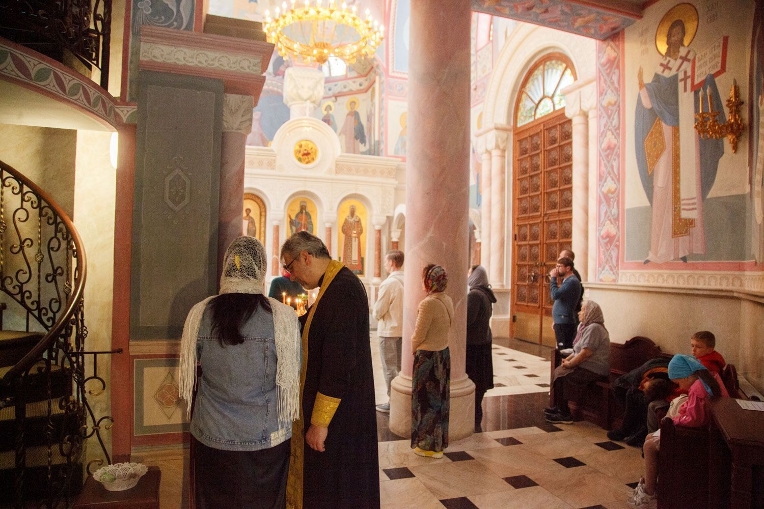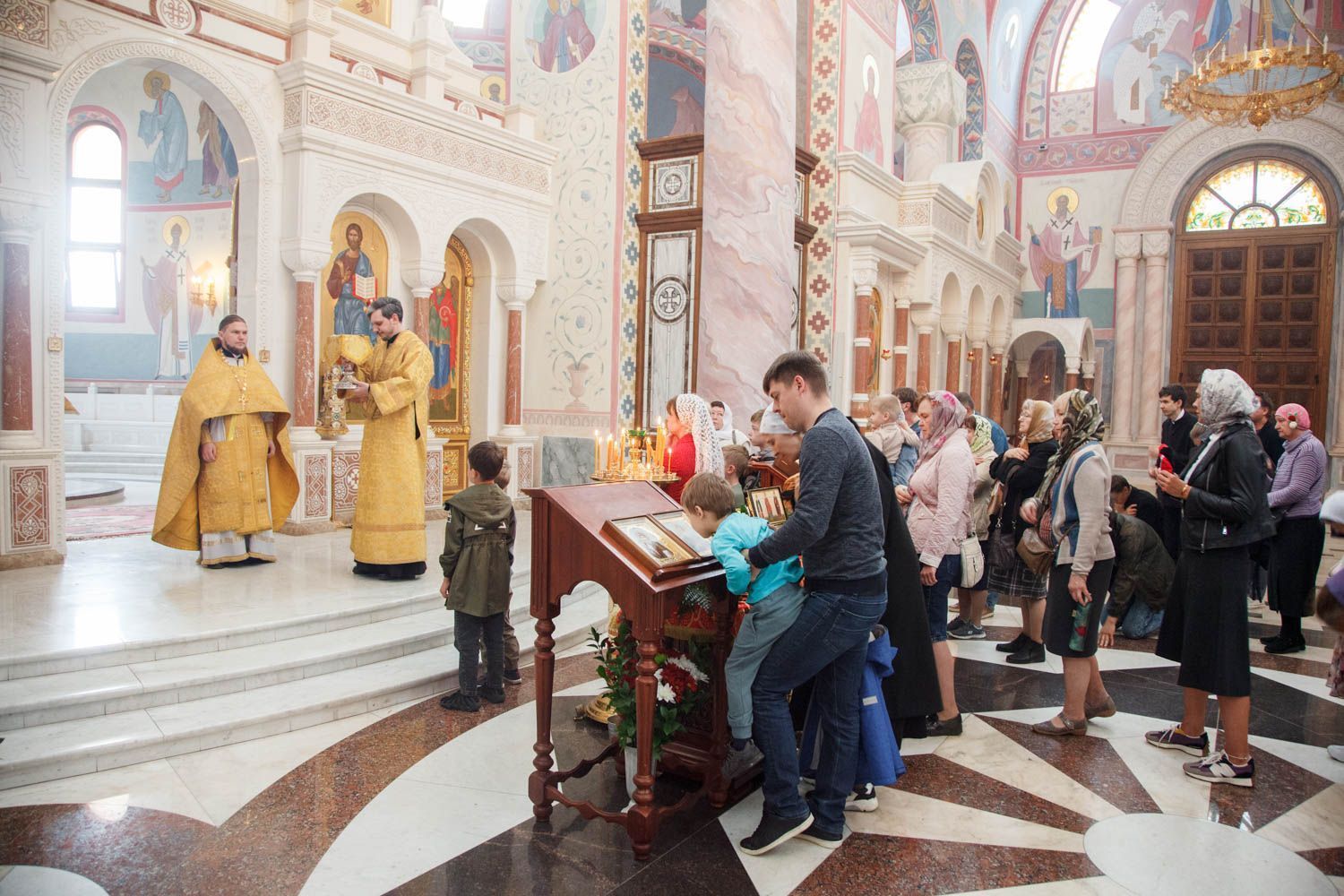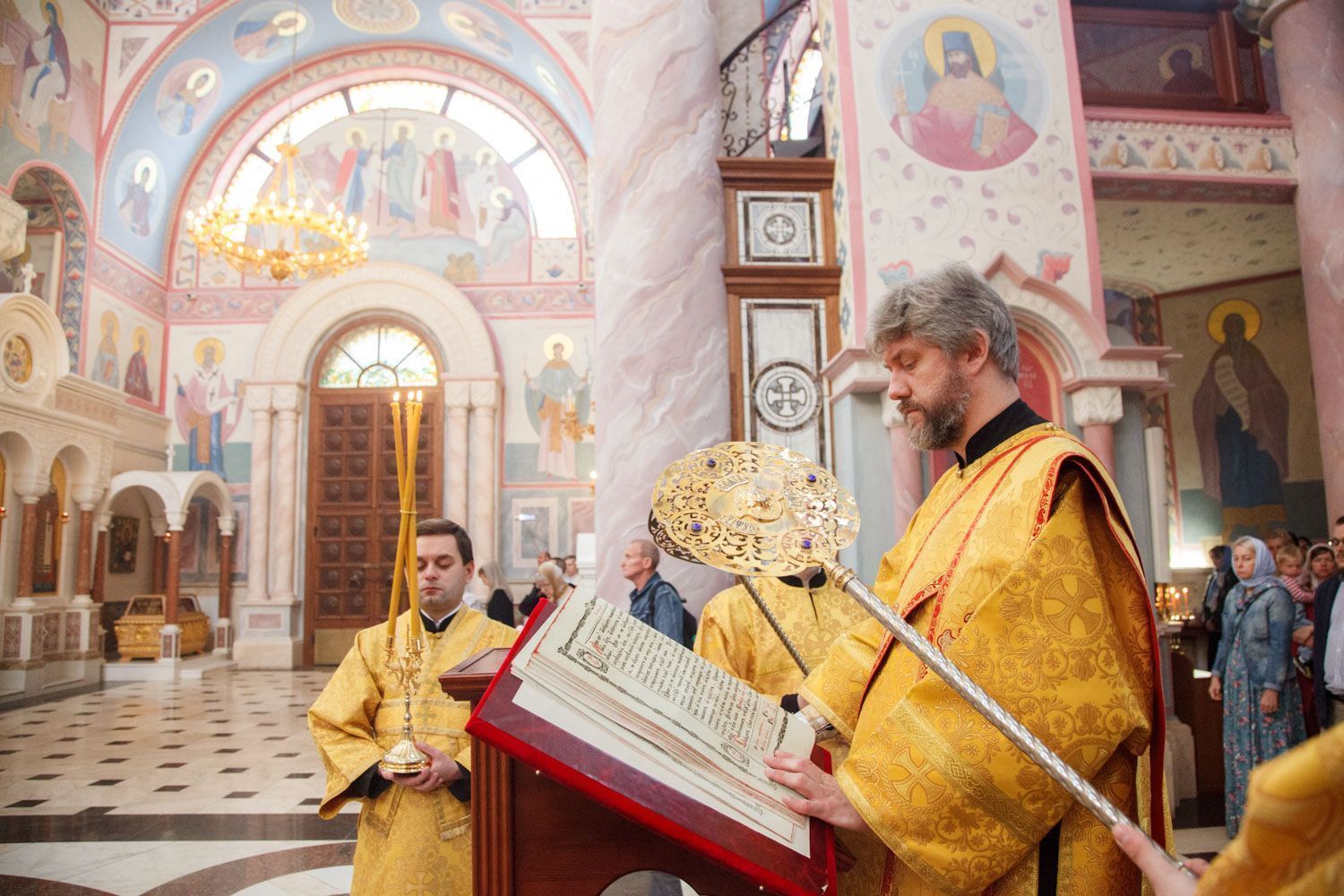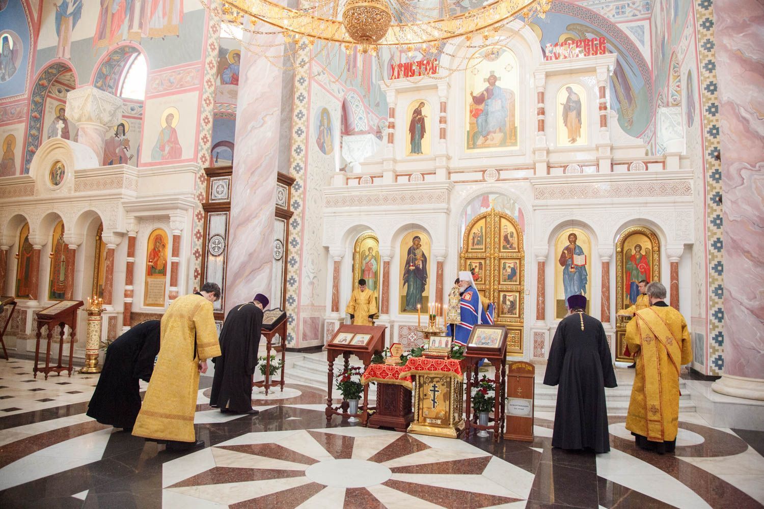 По окончании Литургии митрополит Сергий совершил молебен у ковчега с частицей мощей великомученика Димитрия Солунского.