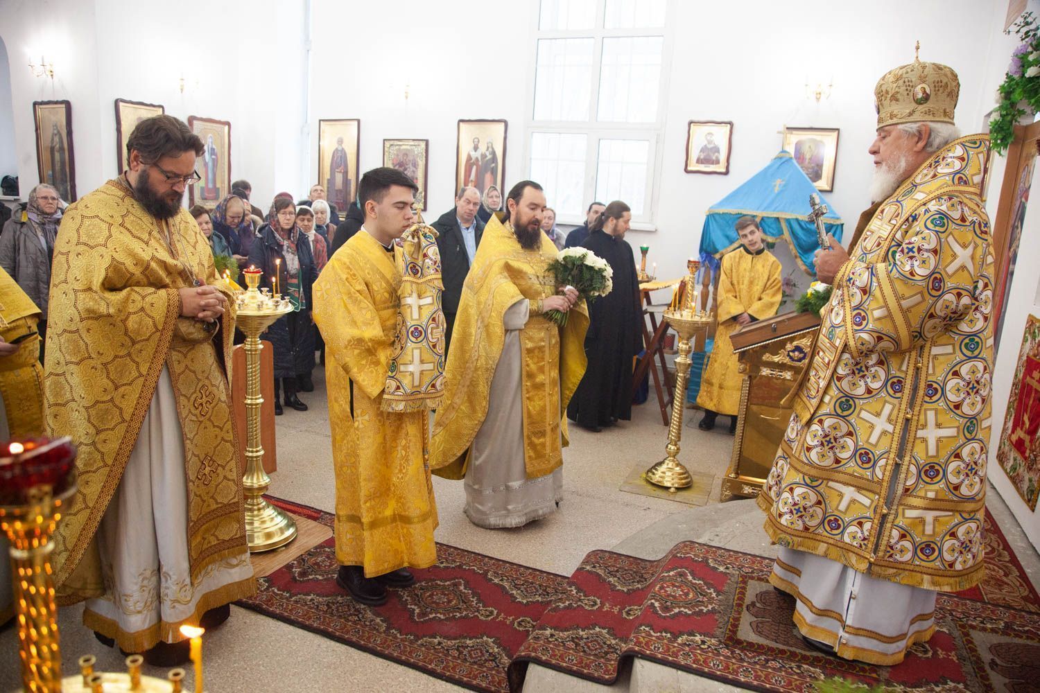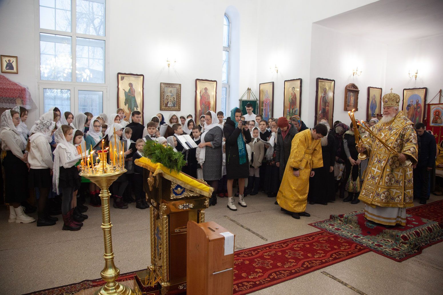 За Божественной литургией возносились ектении о здравии Патриарха Кирилла, который отмечает в этот день день рождения, а также ектении о упокоении жертв дорожно-транспортных происшествий по случаю Всемирного дня памяти жертв ДТП.