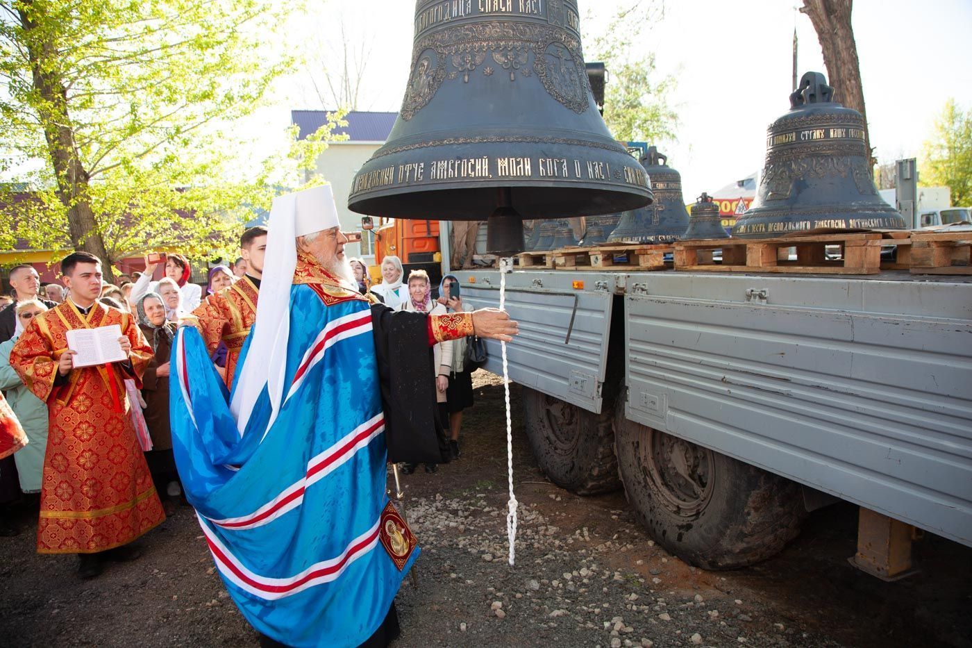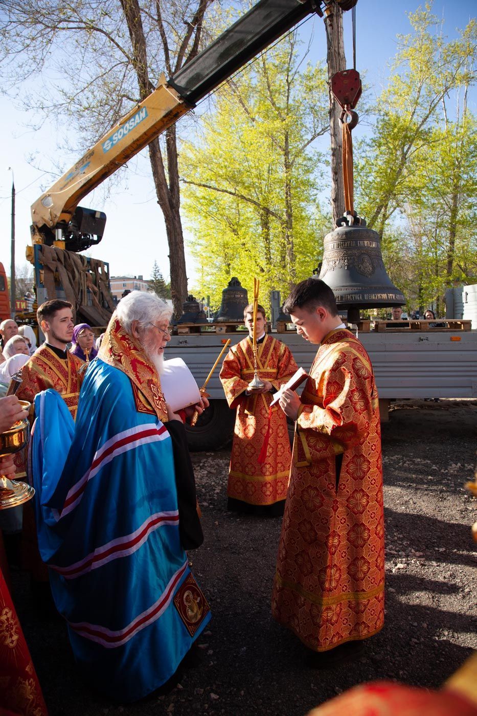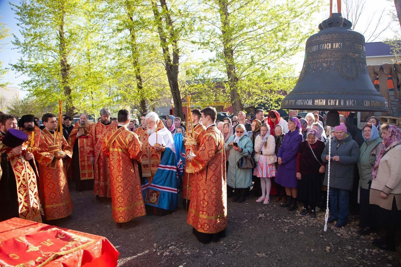 После праздничной службы состоялся крестный ход вокруг храма и чин освящения колоколов.