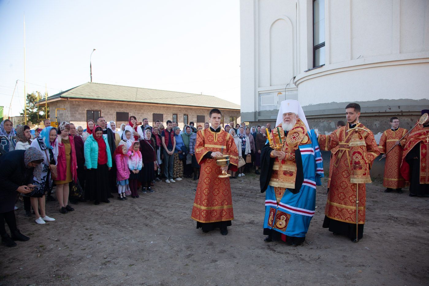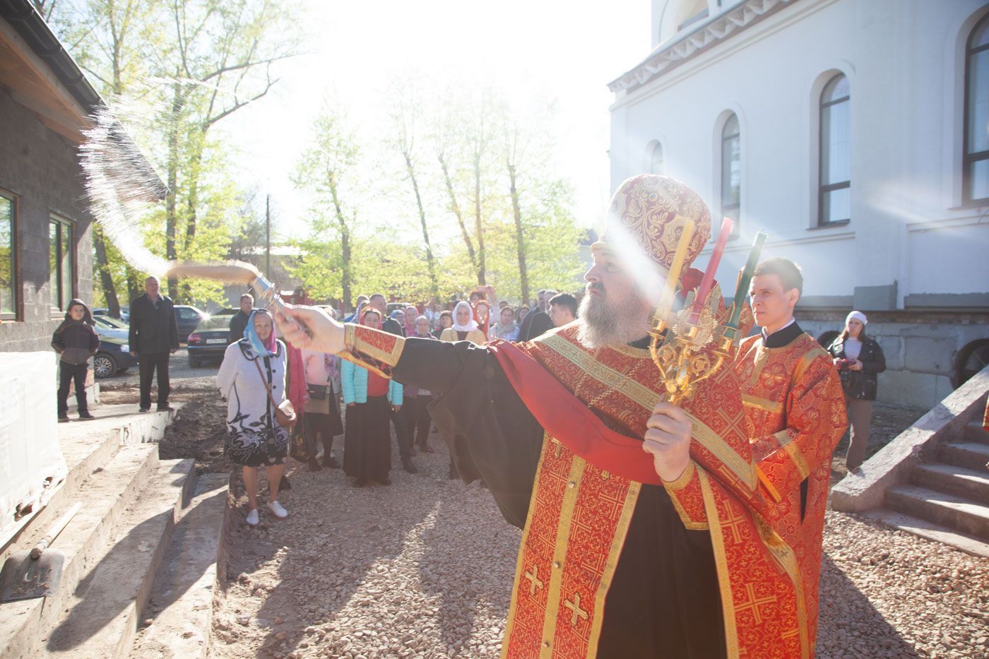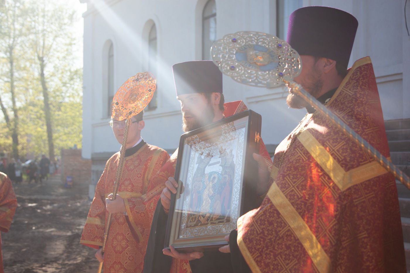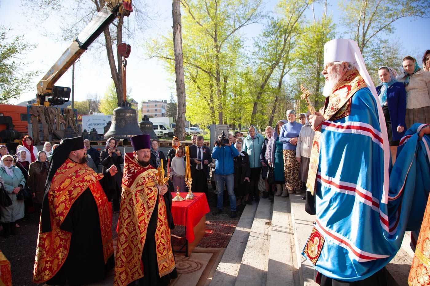 После праздничной службы состоялся крестный ход вокруг храма и чин освящения колоколов.