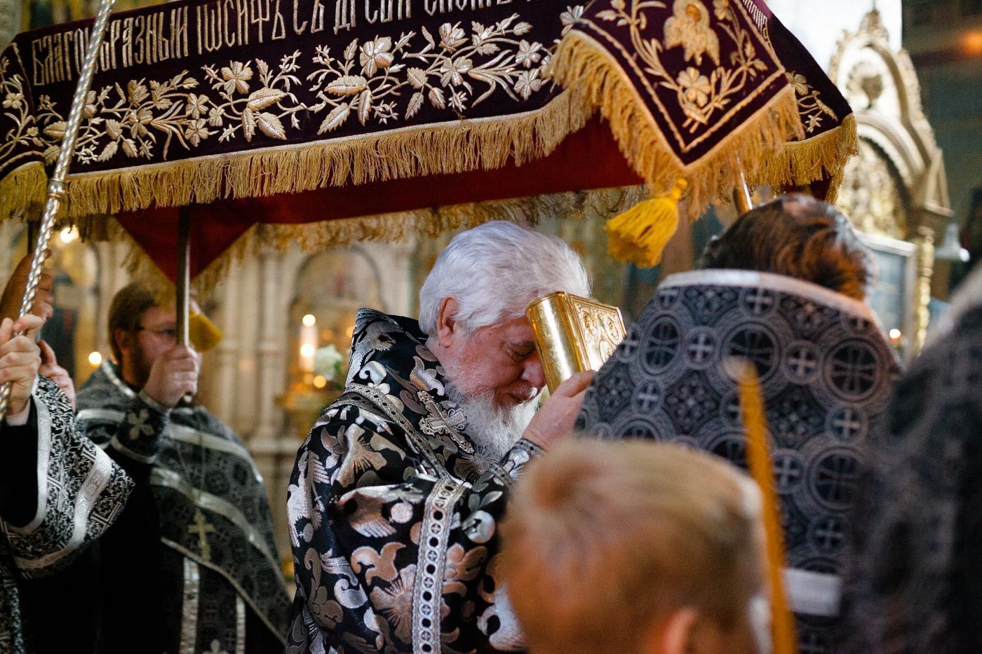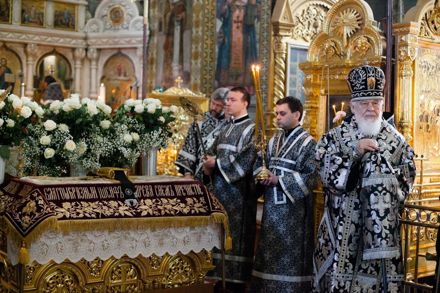 Митрополит Сергий совершил вечерню с выносом Плащаницы Спасителя в Покровском соборе