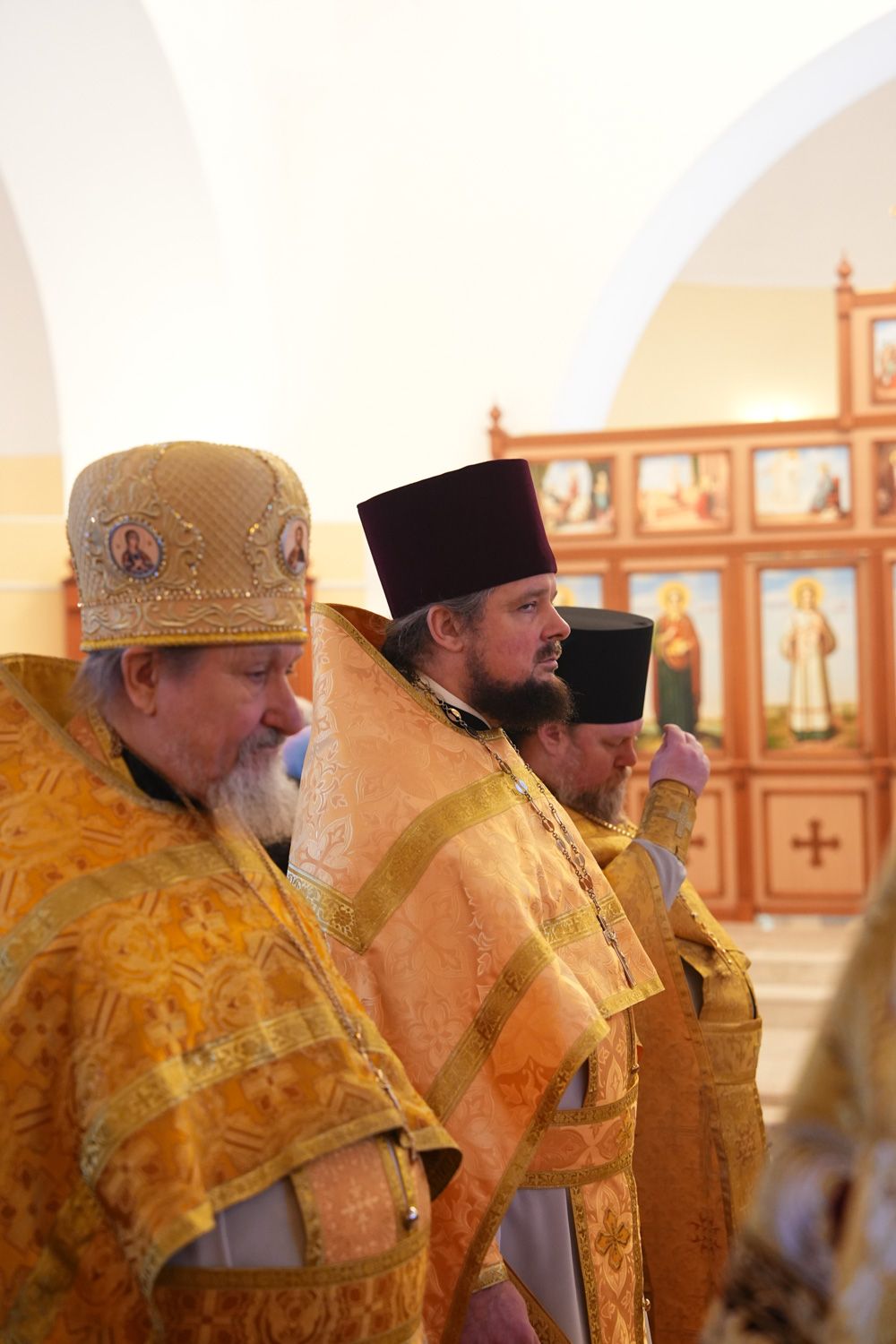 Его Высокопреосвященству сослужили: протоиерей Владимир Загаринский, настоятель храма в честь иконы Божией Матери "Умиления", города Новокуйбышевска; протоиерей Александр Урывский, настоятель Вознесенского собора г. Самары; протоиерей Сергий Пушкарев, секретарь Самарской епархии; иерей Ростислав Дудко, настоятель храма; иеромонах Антоний (Подоровский), благочинный монастырей Самарской епархии; иеромонах Федор (Будаев), настоятель храма святителя Николая чудотворца в Южном городе.
