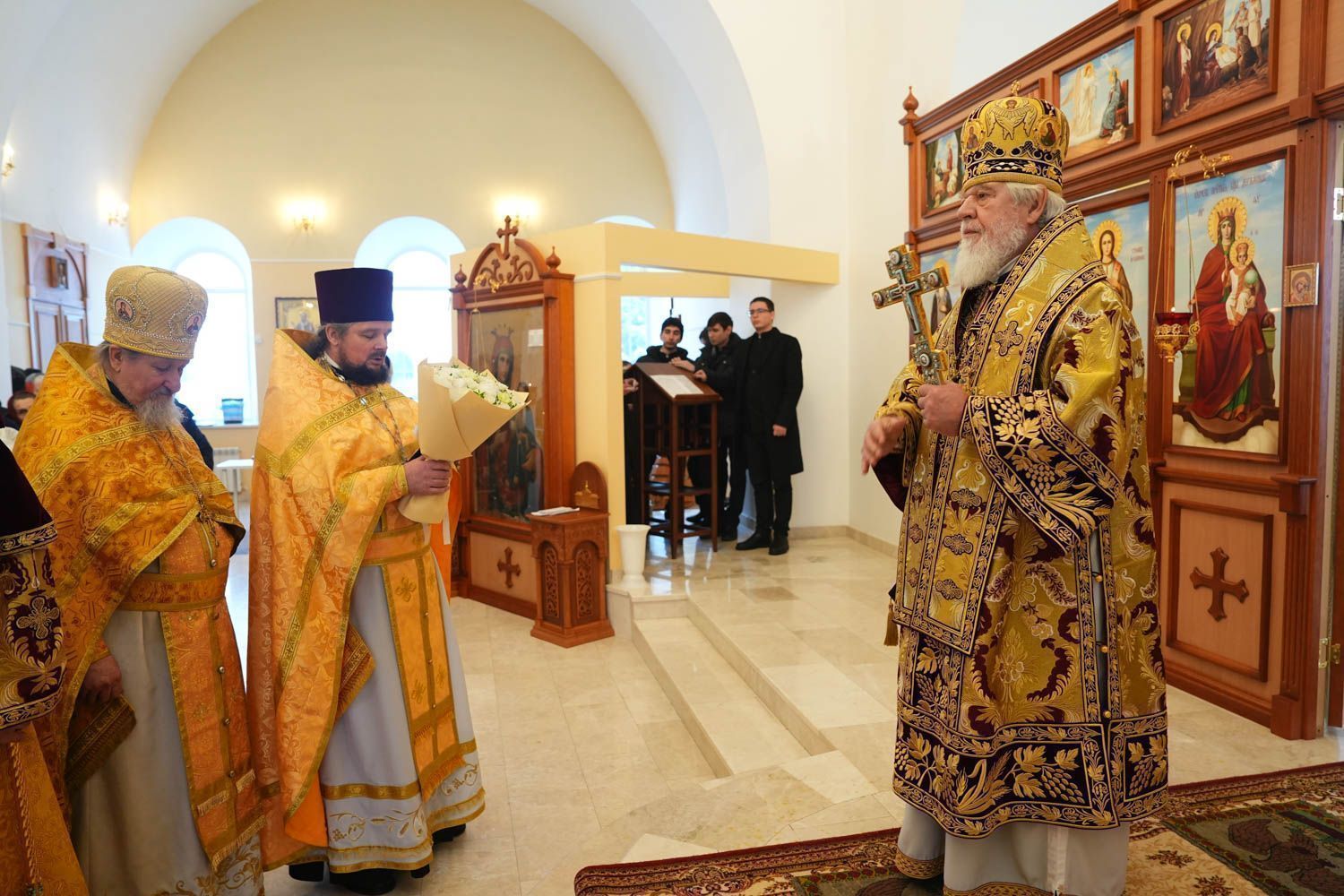 По окончании богослужения настоятель храма иерей Ростислав Дудко приветствовал правящего архиерея, после чего владыка Сергий взаимно поздравил духовенство и прихожан с престольным праздником и обратился к ним с архипастырским словом.