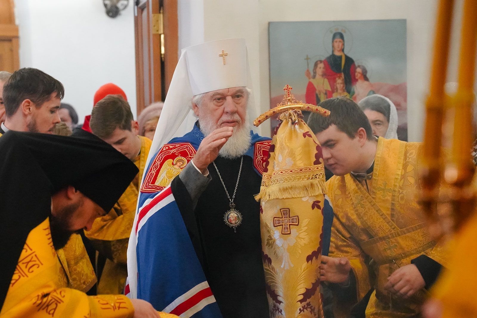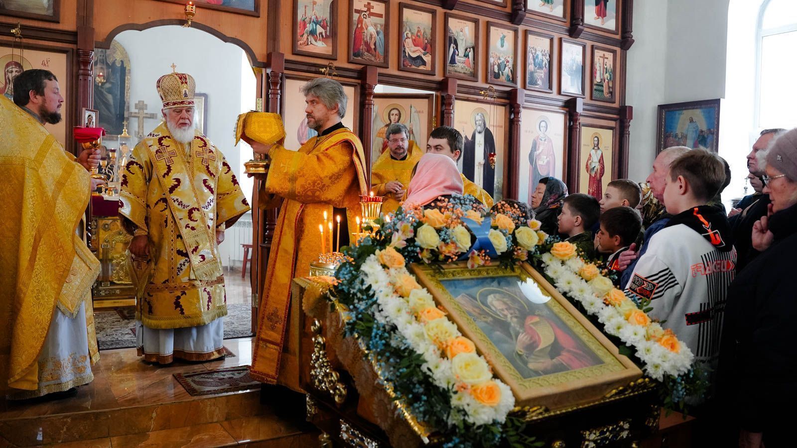 По окончании богослужения митрополит Сергий поздравил духовенство и прихожан с престольным праздником и обратился к ним с архипастырским словом.