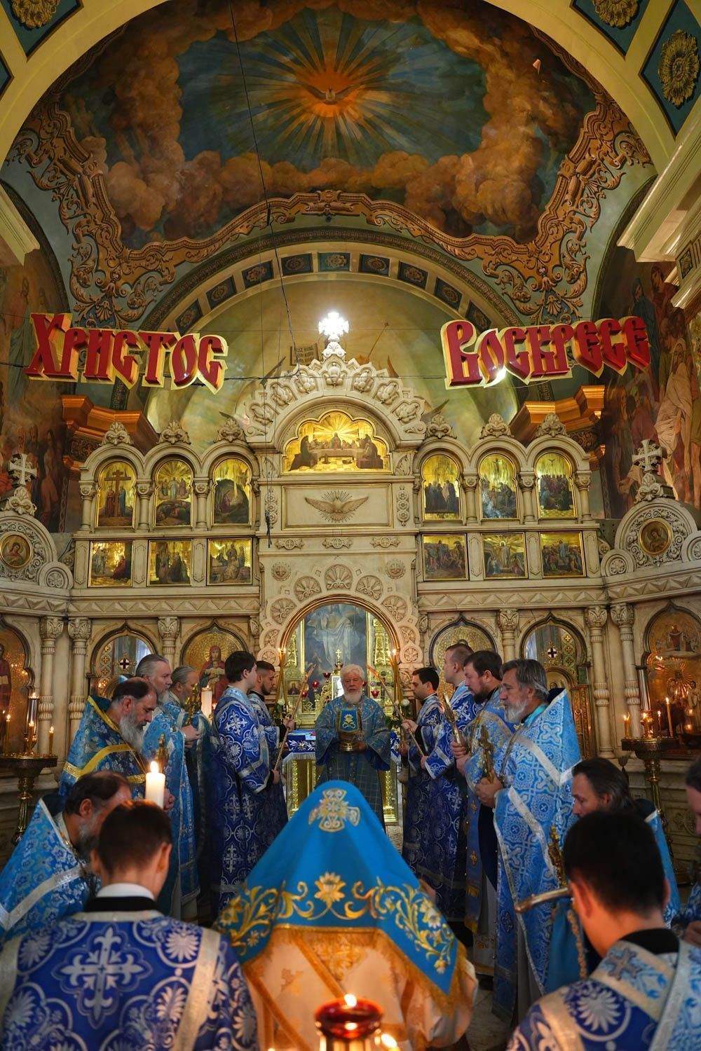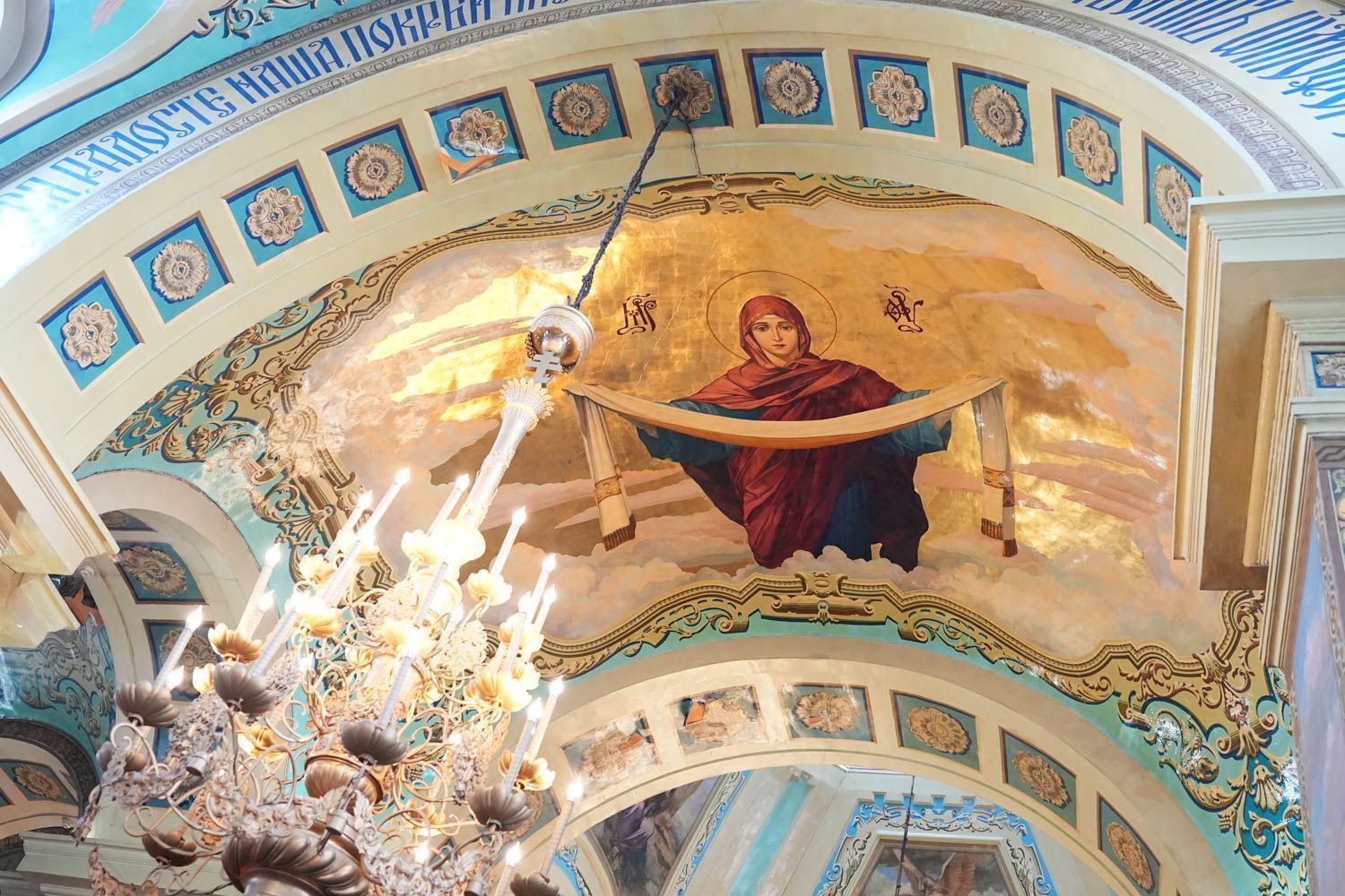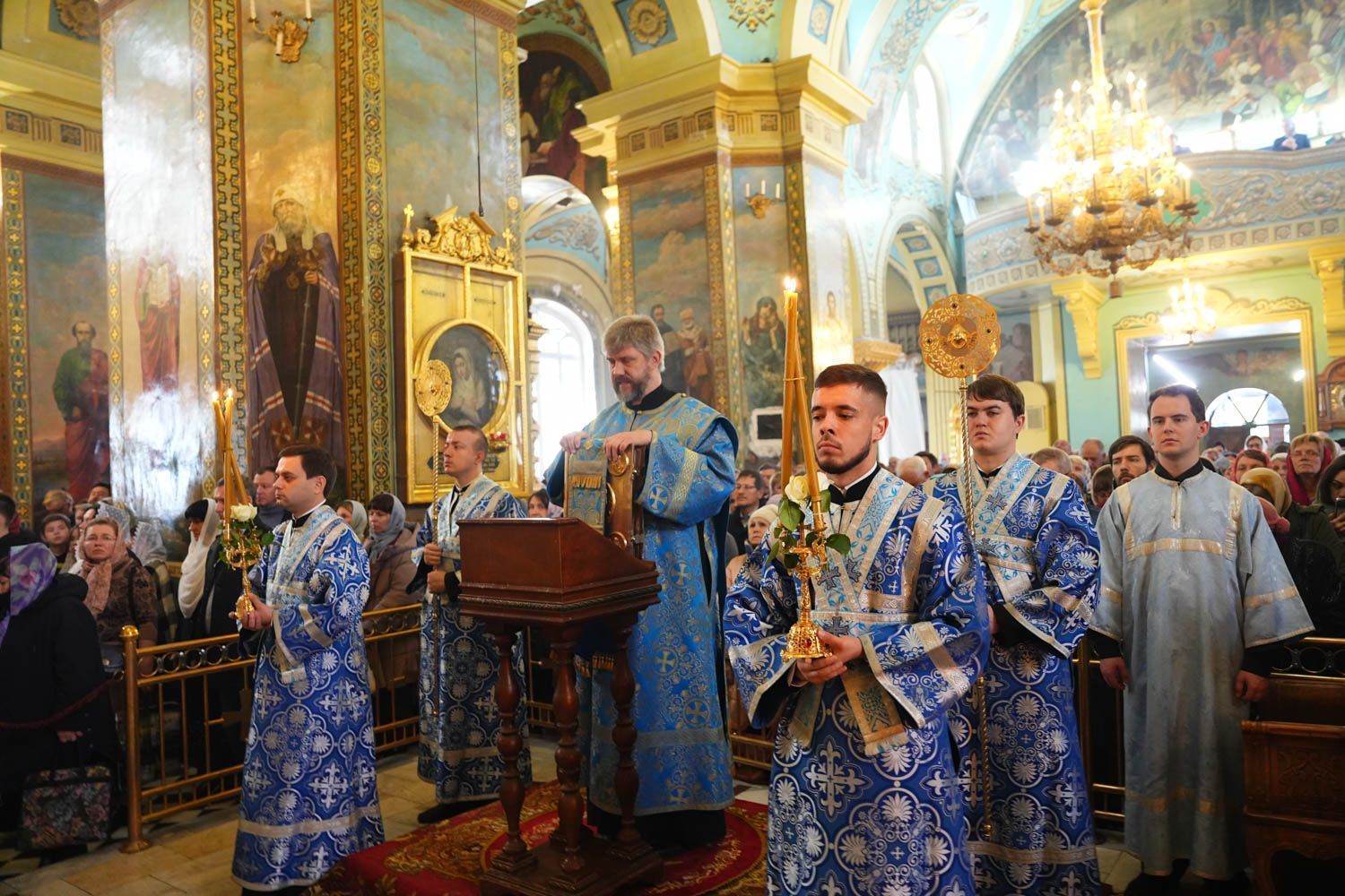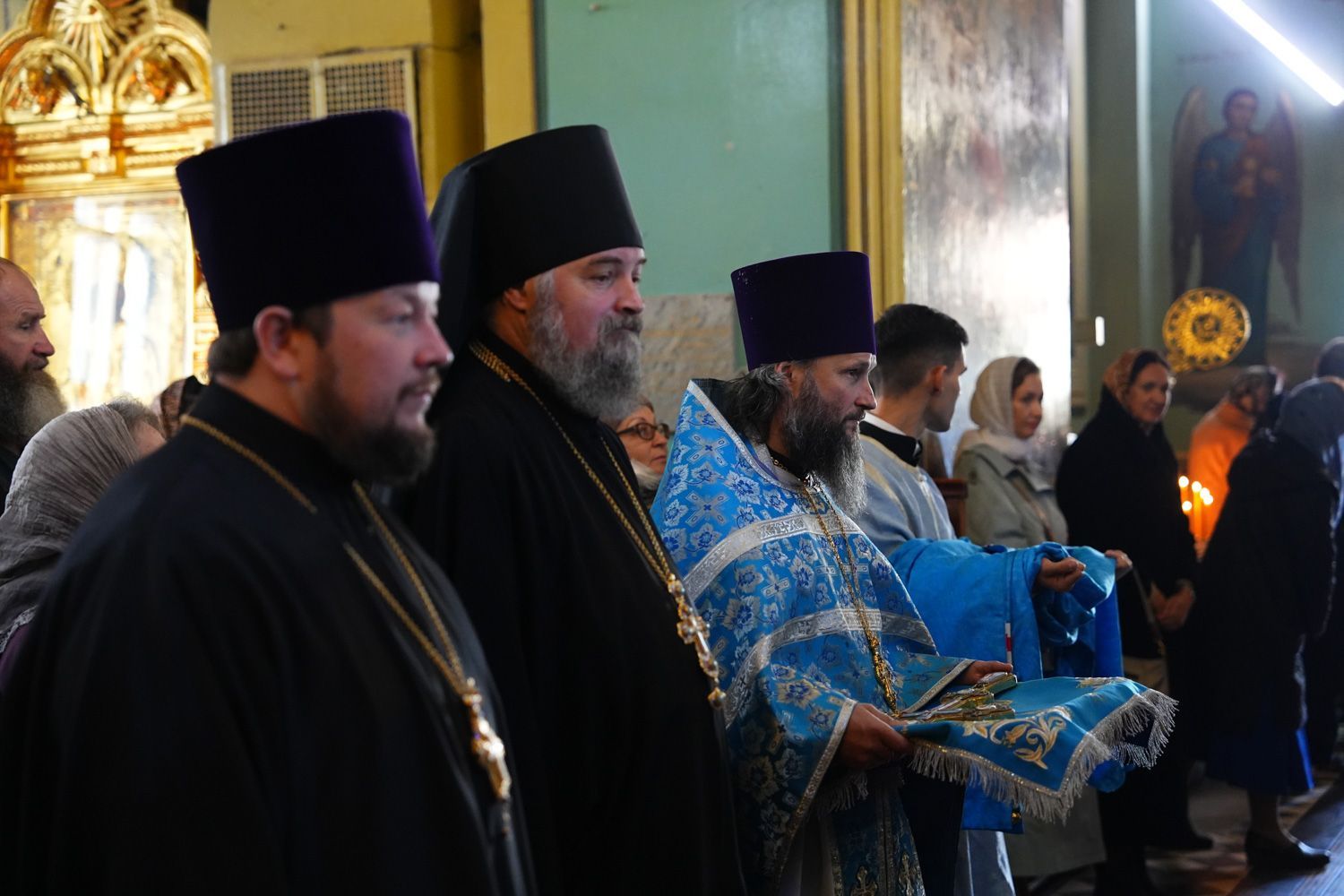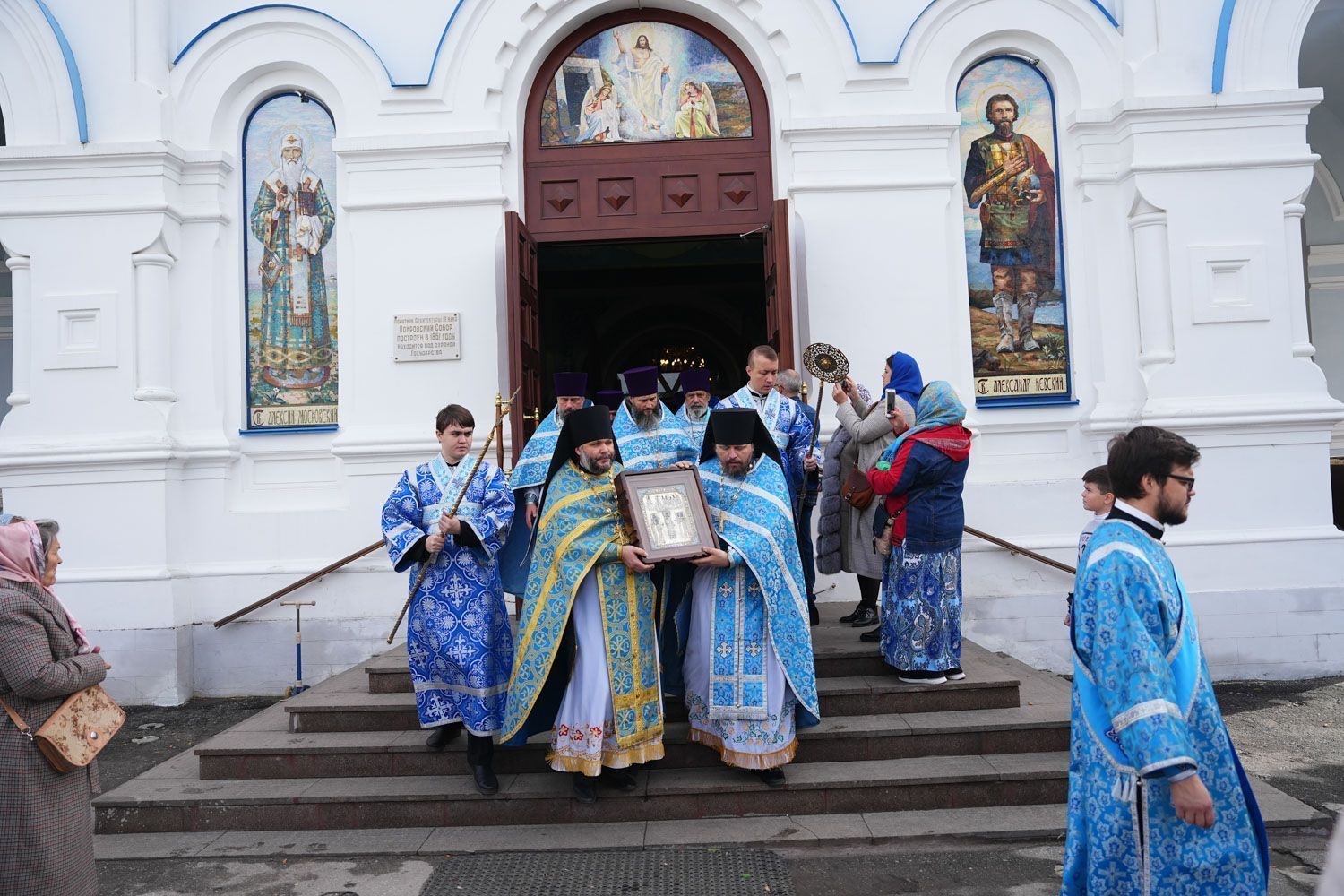 По окончании богослужения состоялся крестный ход вокруг собора, после которого было совершено славление празднику Покрова Пресвятой Богородицы.