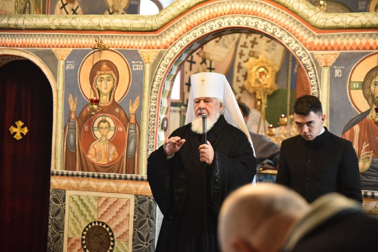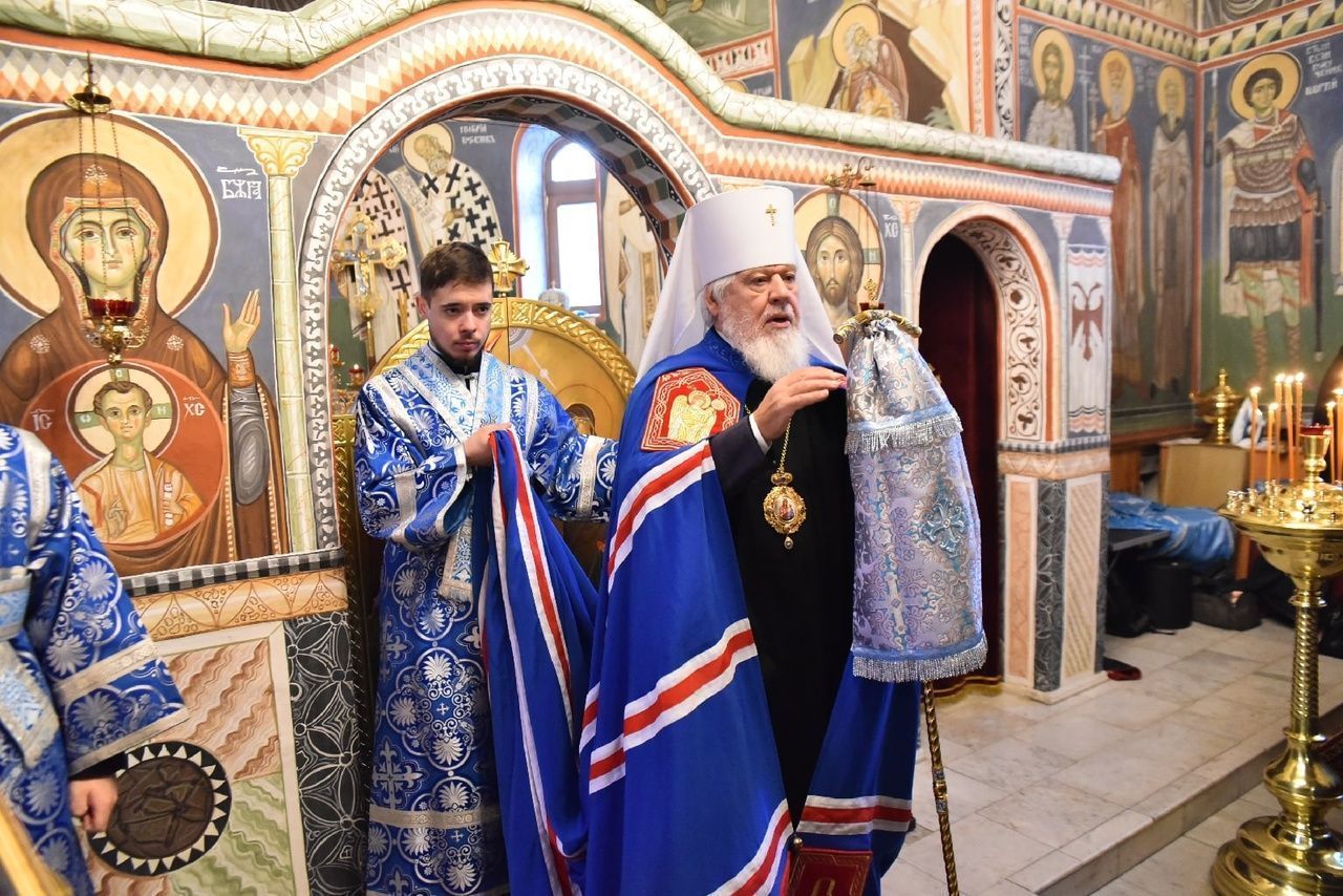 По окончании богослужения митрополит Сергий поздравил духовенство и прихожан с престольным праздником и обратился к ним с архипастырским словом.