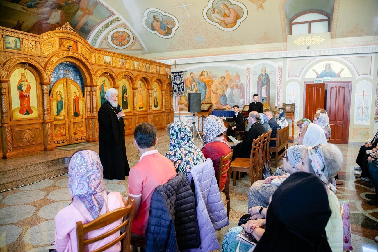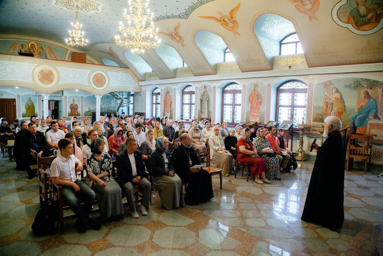 В храме в честь преподобного Сергия Радонежского перед педагогическим сообществом выступил управляющий Самарской митрополии, митрополит Сергий. В своем приветственном слове архипастырь рассказал об истории создания Спасо-Богородичного Казанского мужского монастыря, значении монастырей в истории нашей страны, роли учителя в формировании личности подрастающего поколения.