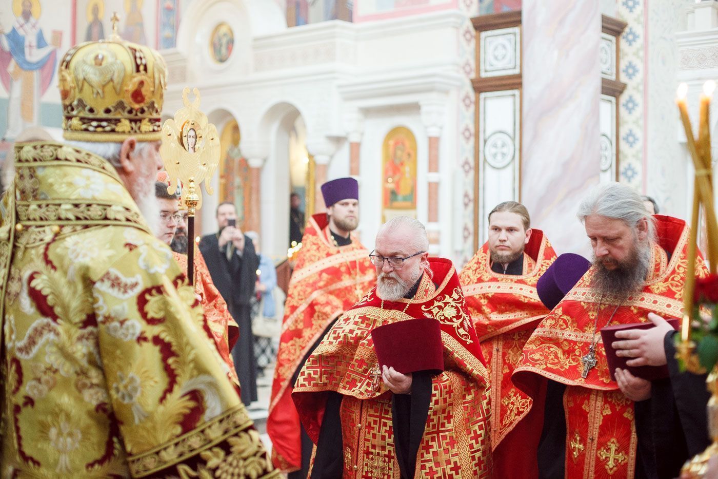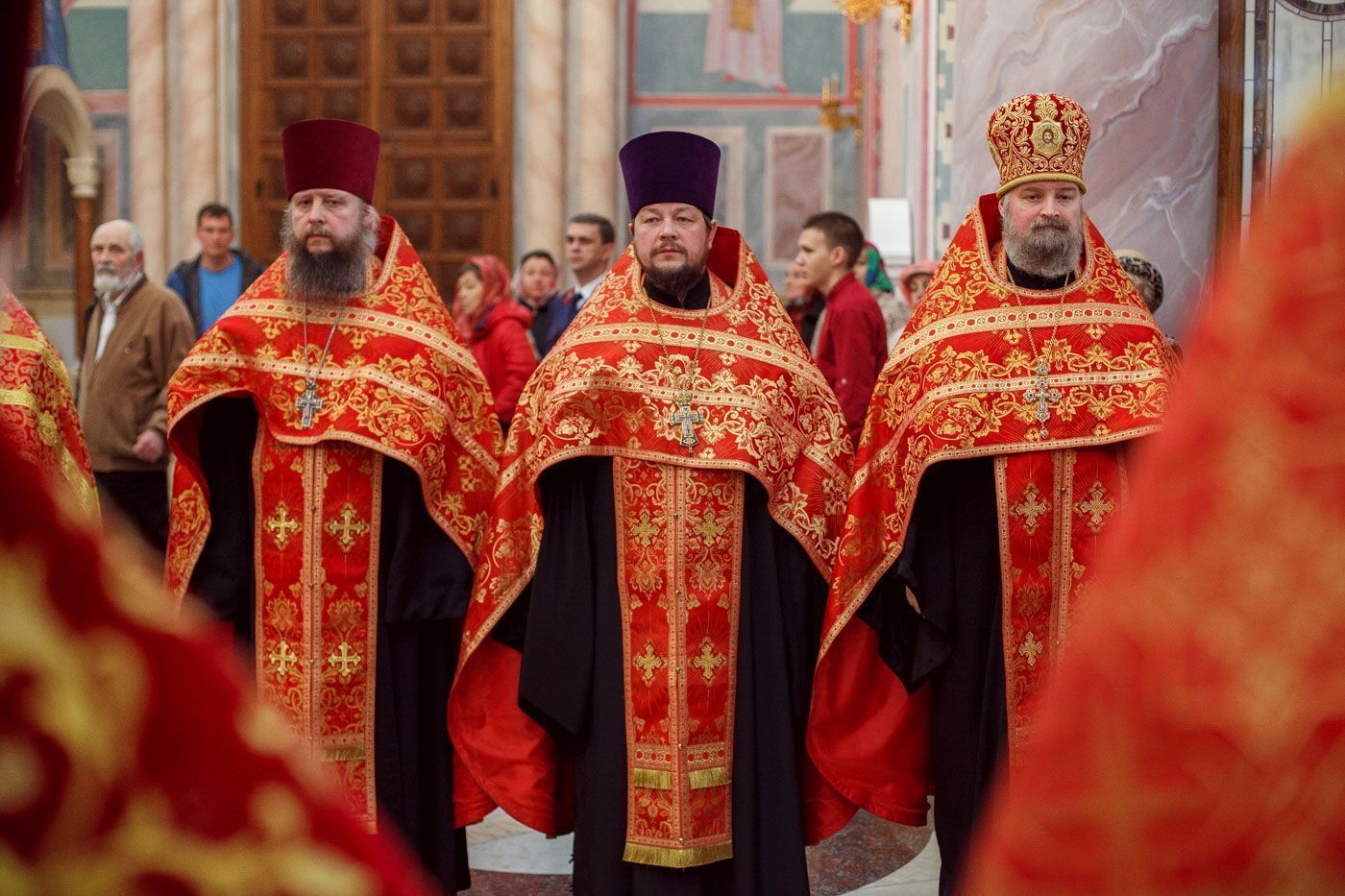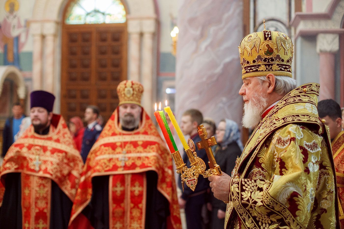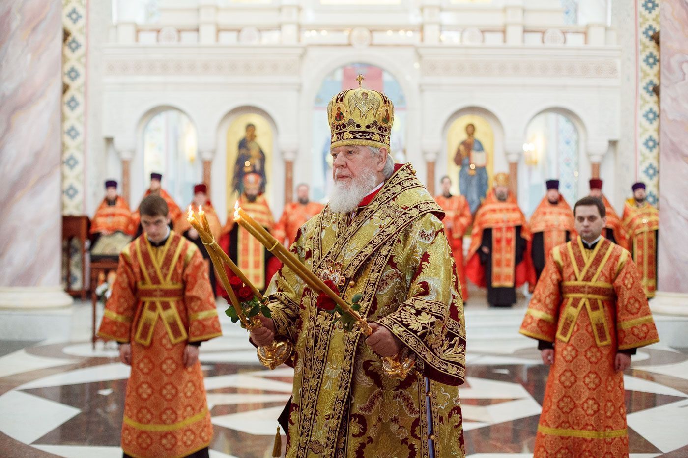 К началу Пасхальной вечерни в собор был доставлен Благодатный огонь, сошедший накануне в Храме Гроба Господня в Иерусалиме.
