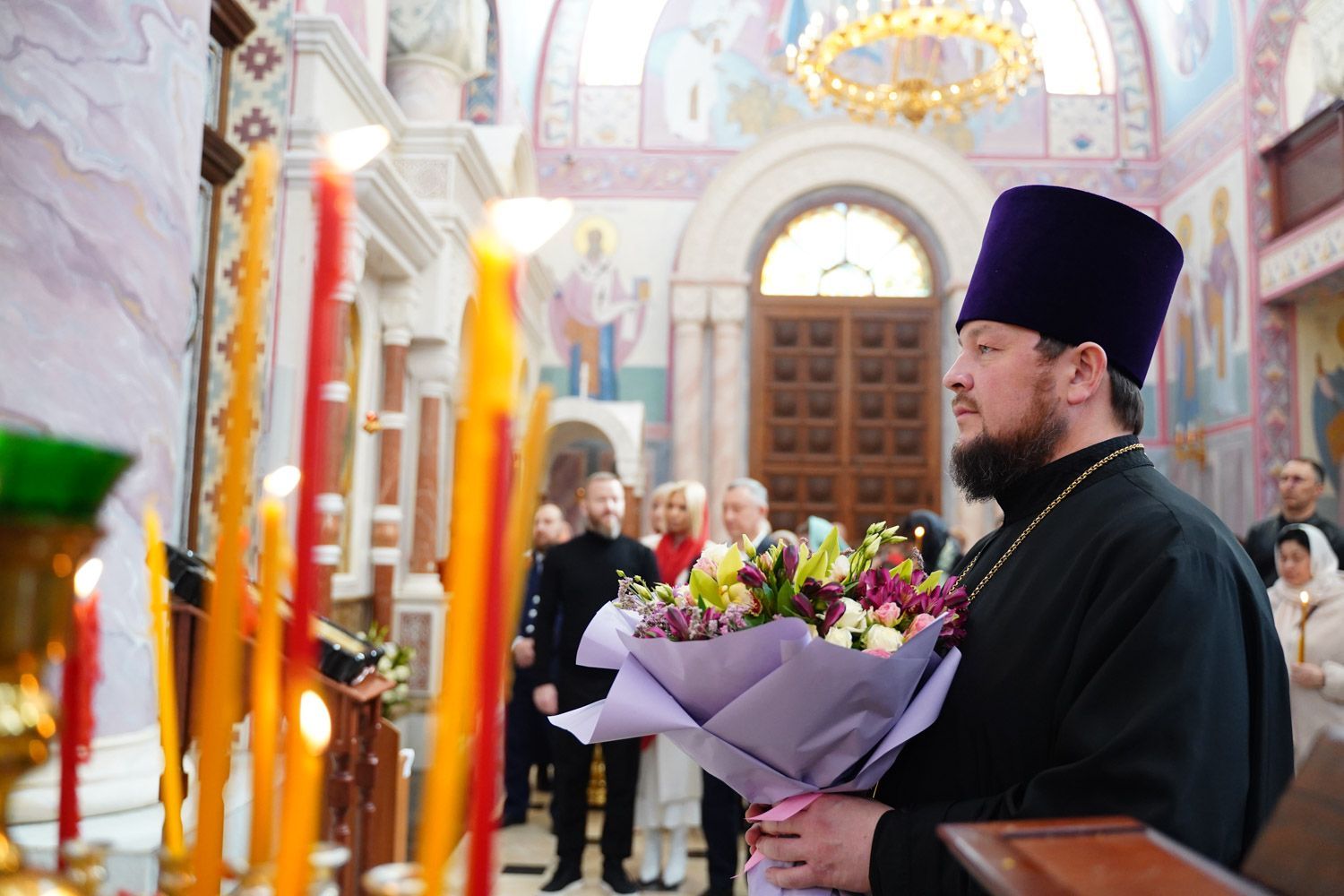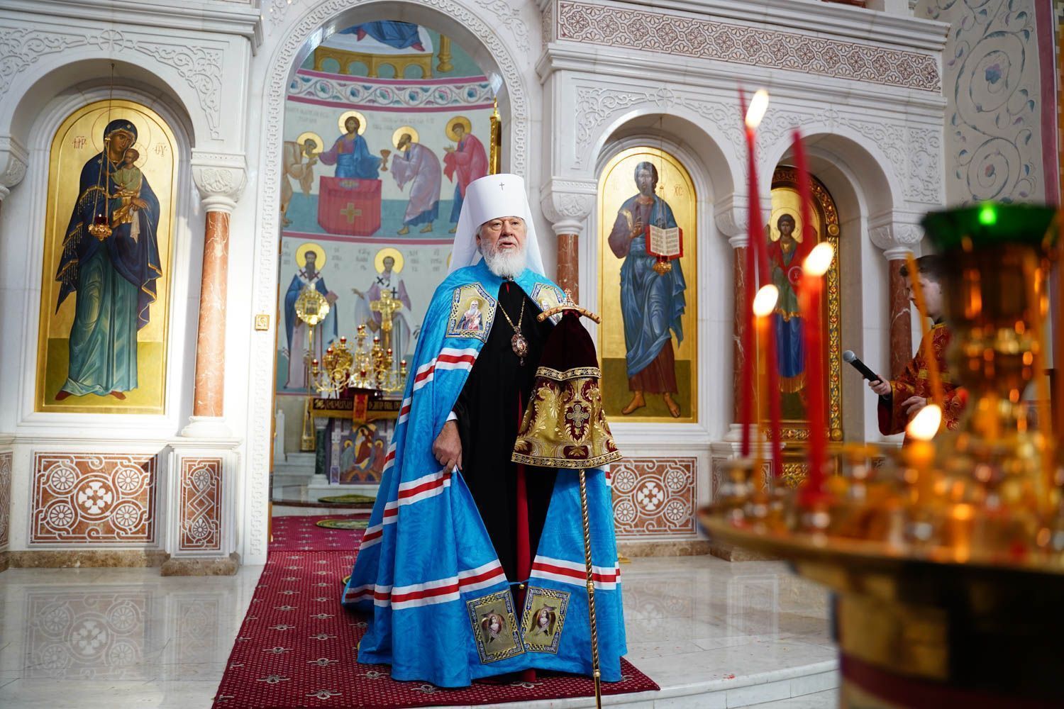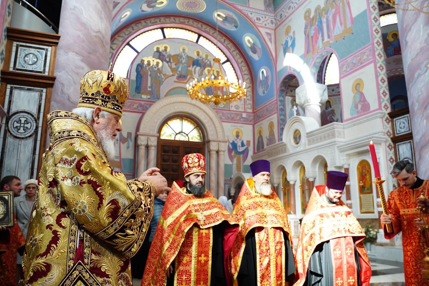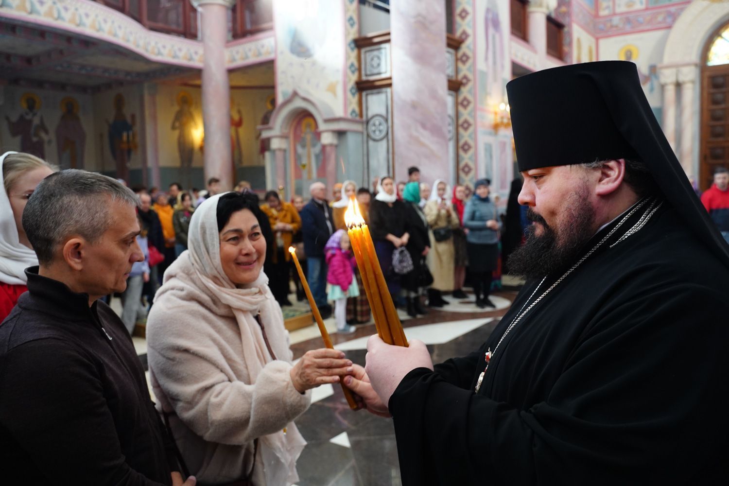 К началу Пасхальной вечерни в собор был доставлен Благодатный огонь, сошедший накануне в Храме Гроба Господня в Иерусалиме.