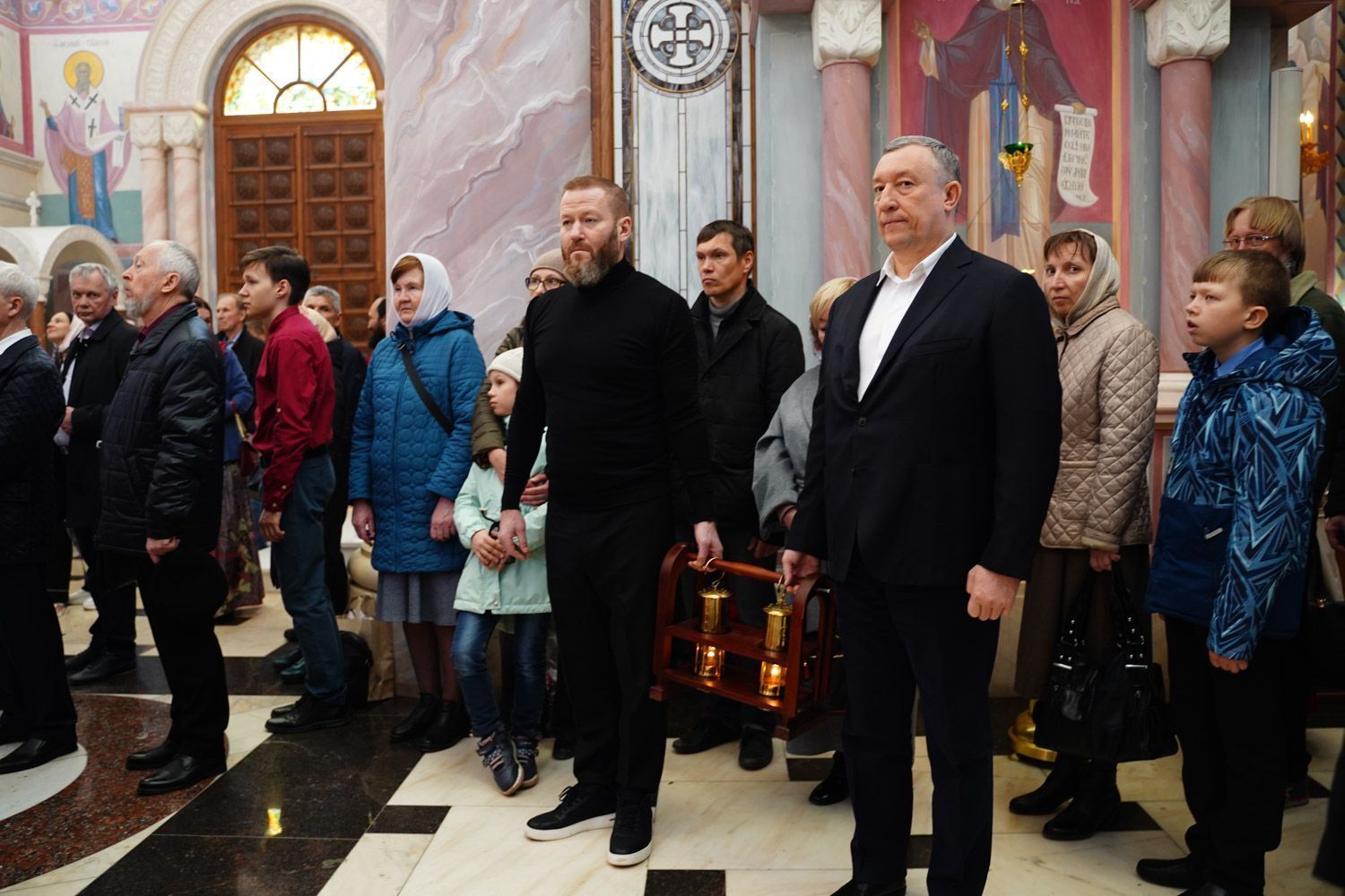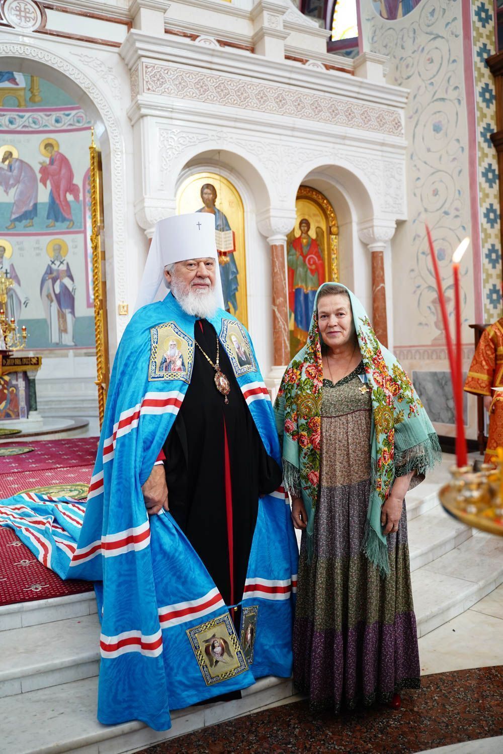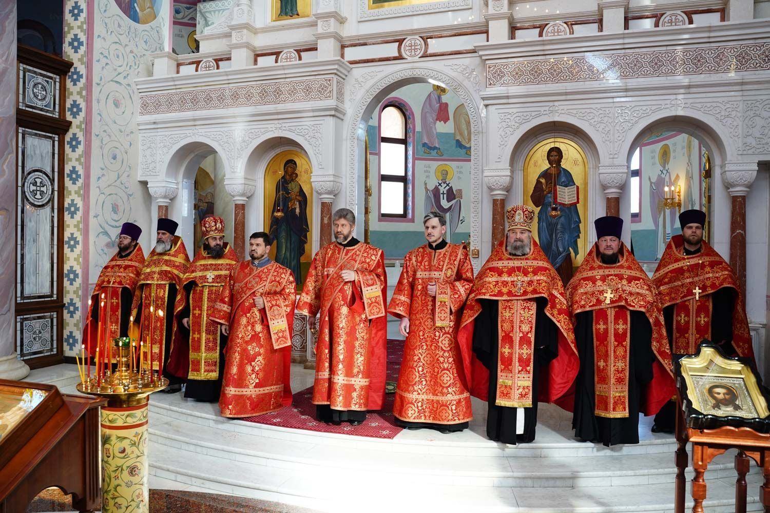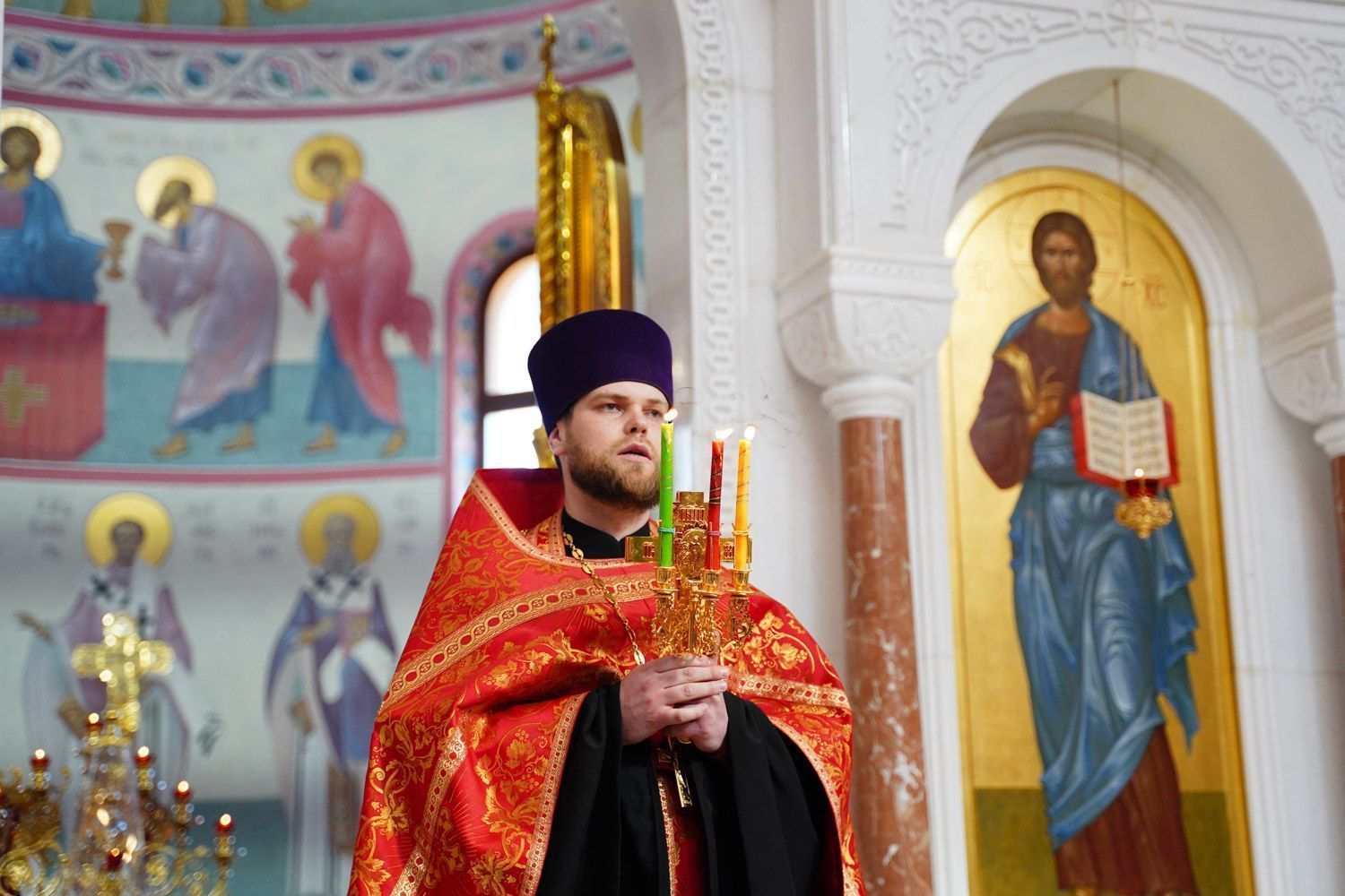 К началу Пасхальной вечерни в собор был доставлен Благодатный огонь, сошедший накануне в Храме Гроба Господня в Иерусалиме.