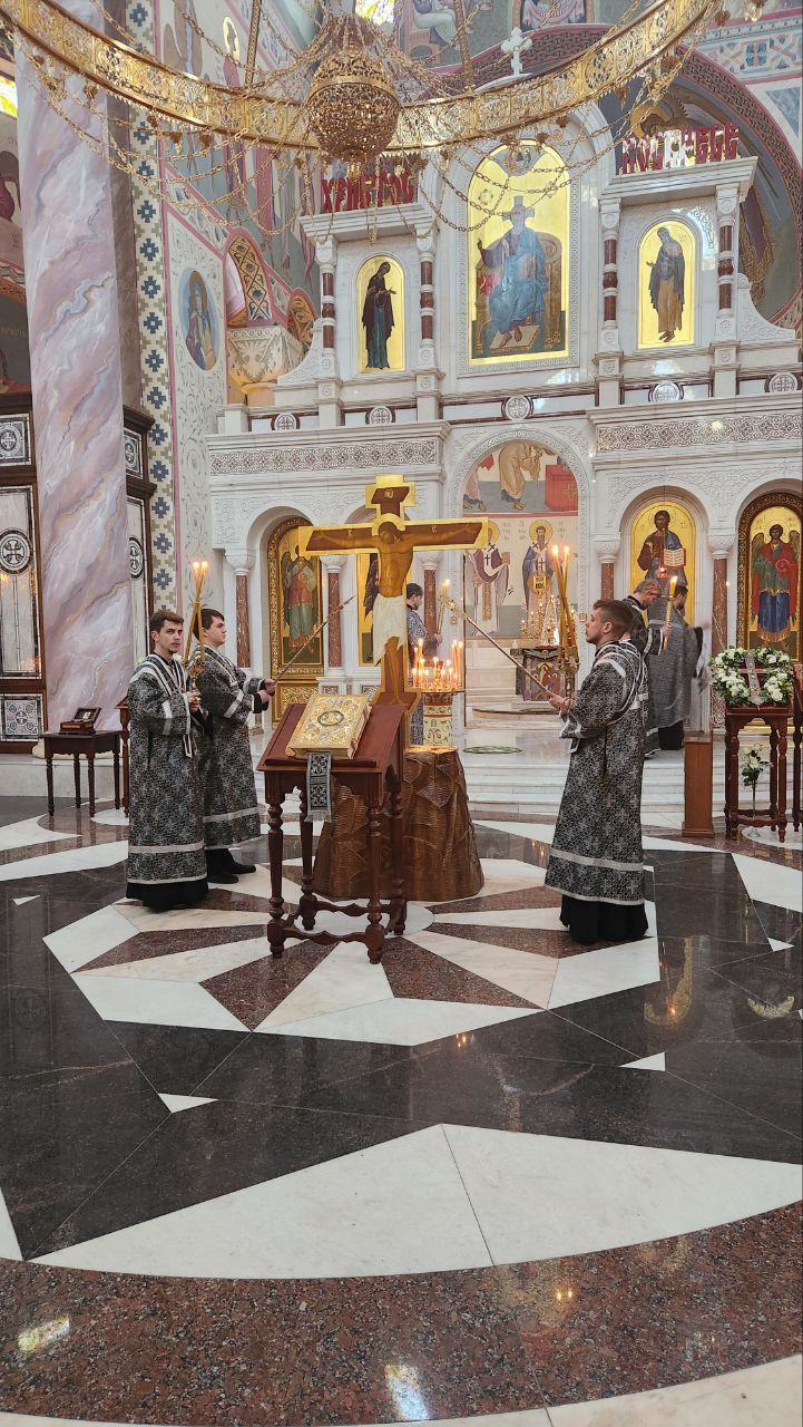 В конце службы все верующие с благоговением подходят поклониться распятому Господу Иисусу Христу, Крест которого на пассии выносится на середину храма.