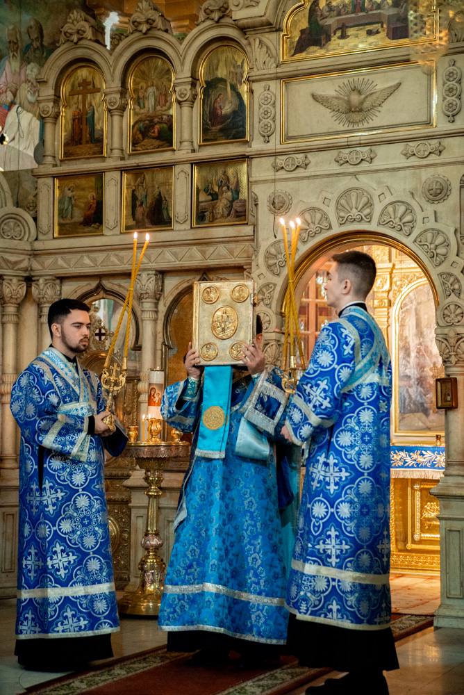 5 декабря, накануне субботы Попразднства Введения во храм Пресвятой Богородицы, митрополит Самарский и Новокуйбышевский Феодосий возглавил полиелейное богослужение в Покровском соборе г. Самары.