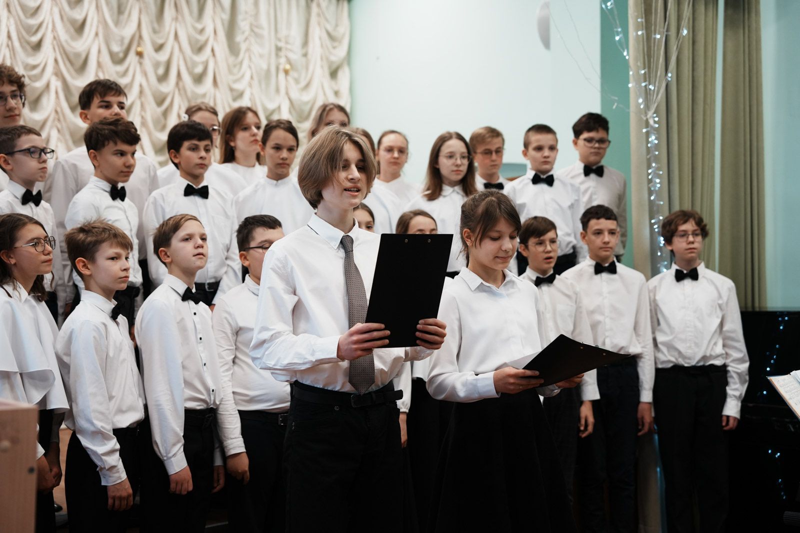 После осмотра образовательного учереждения в актовом зале состоялось общение митрополита Сергия с педагогами и воспитанниками лицея. Учащие подготовили для гостей небольшой концерт.