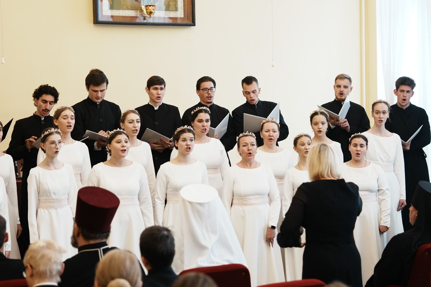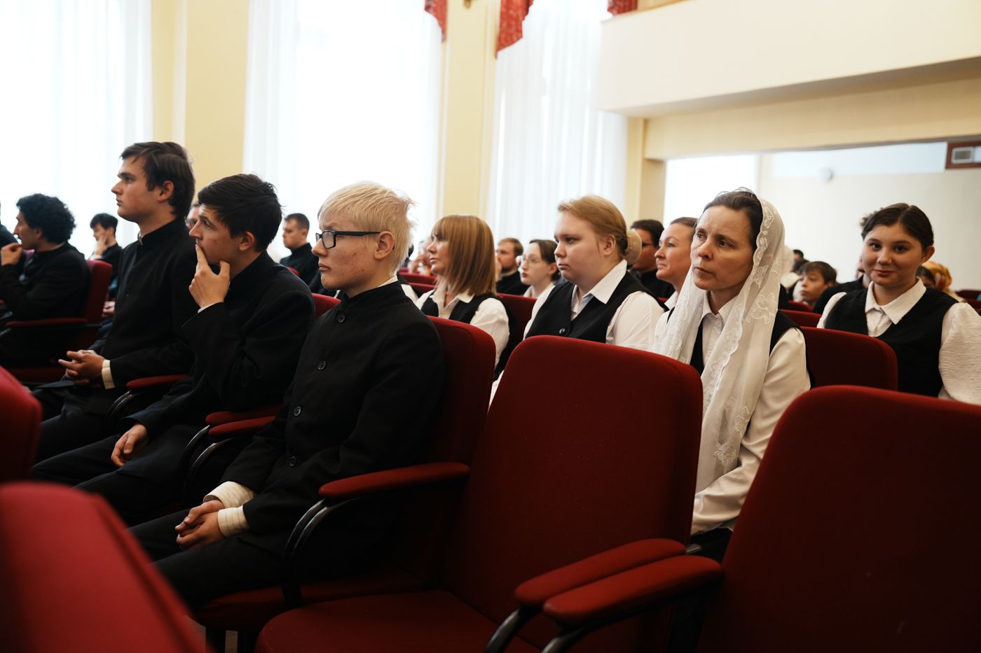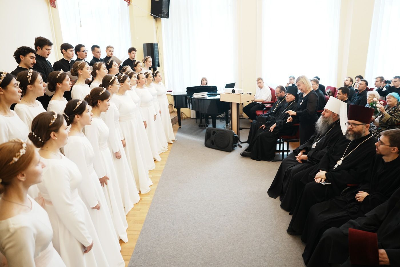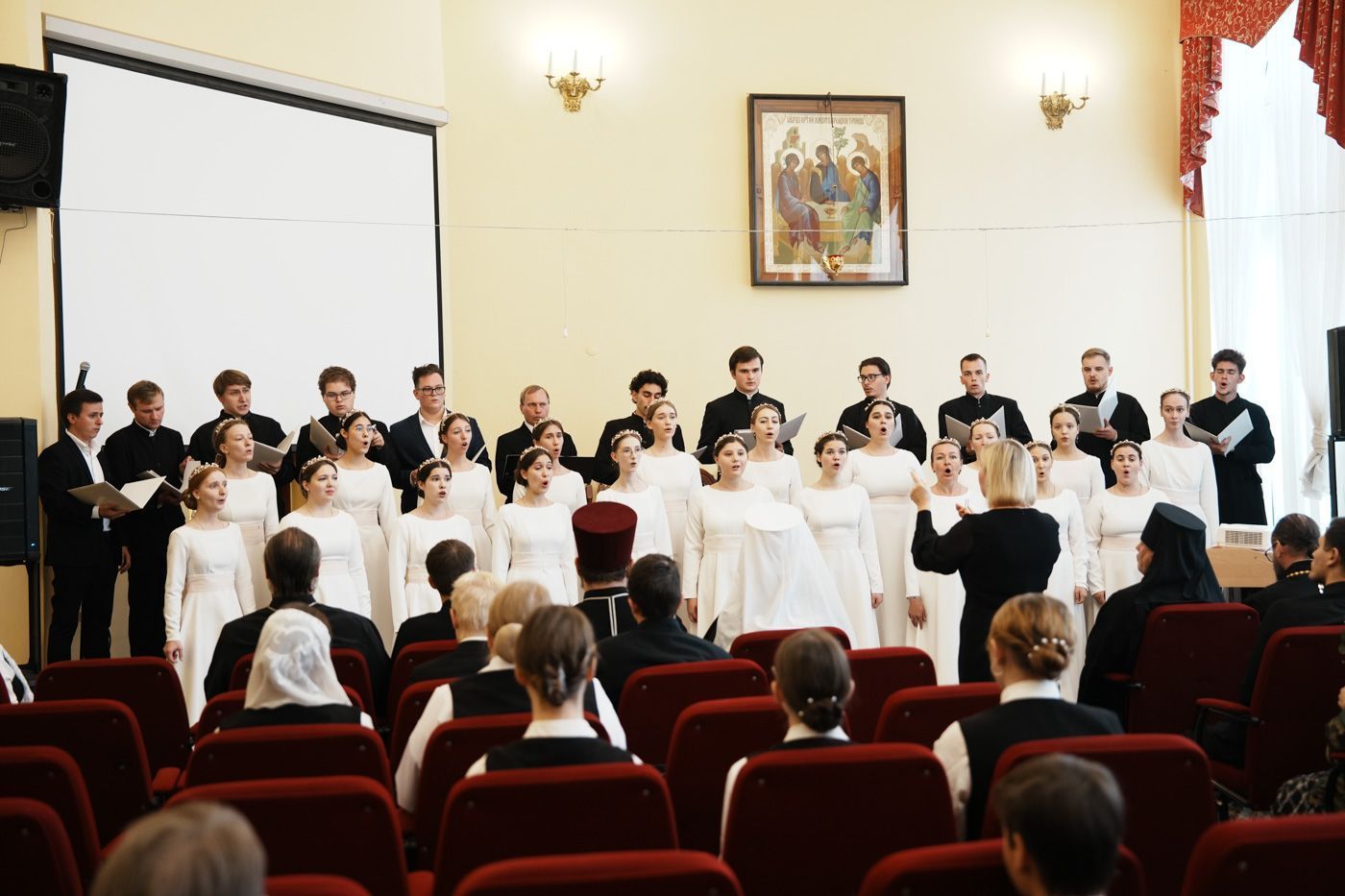 Затем собравшиеся совершили молебен преподобным Кириллу и Марии, а затем торжества продолжилось в актовом зале вручением студенческих билетов первокурсникам и праздничным концертом.