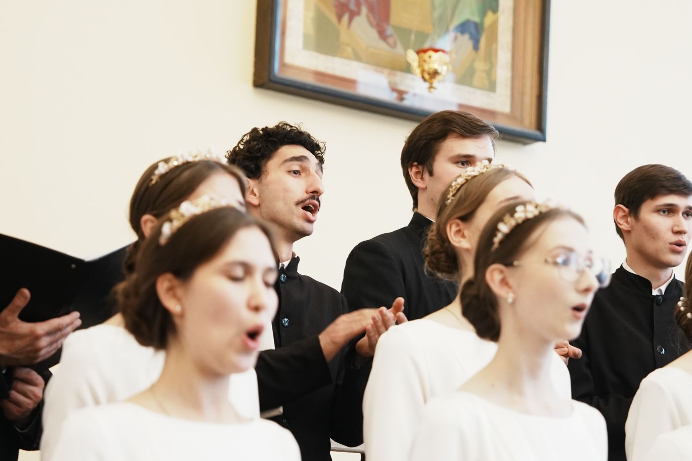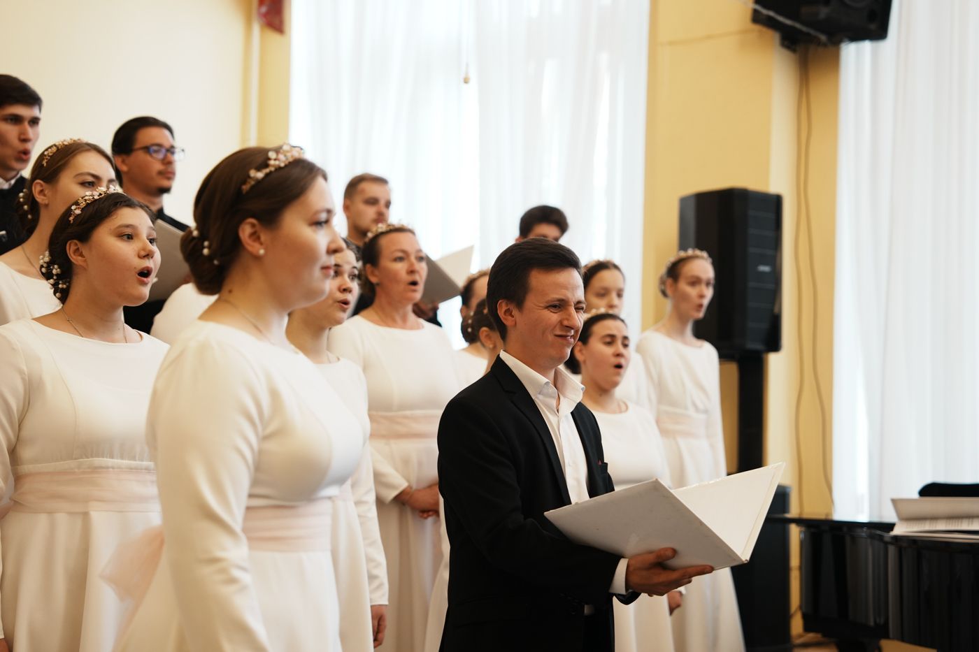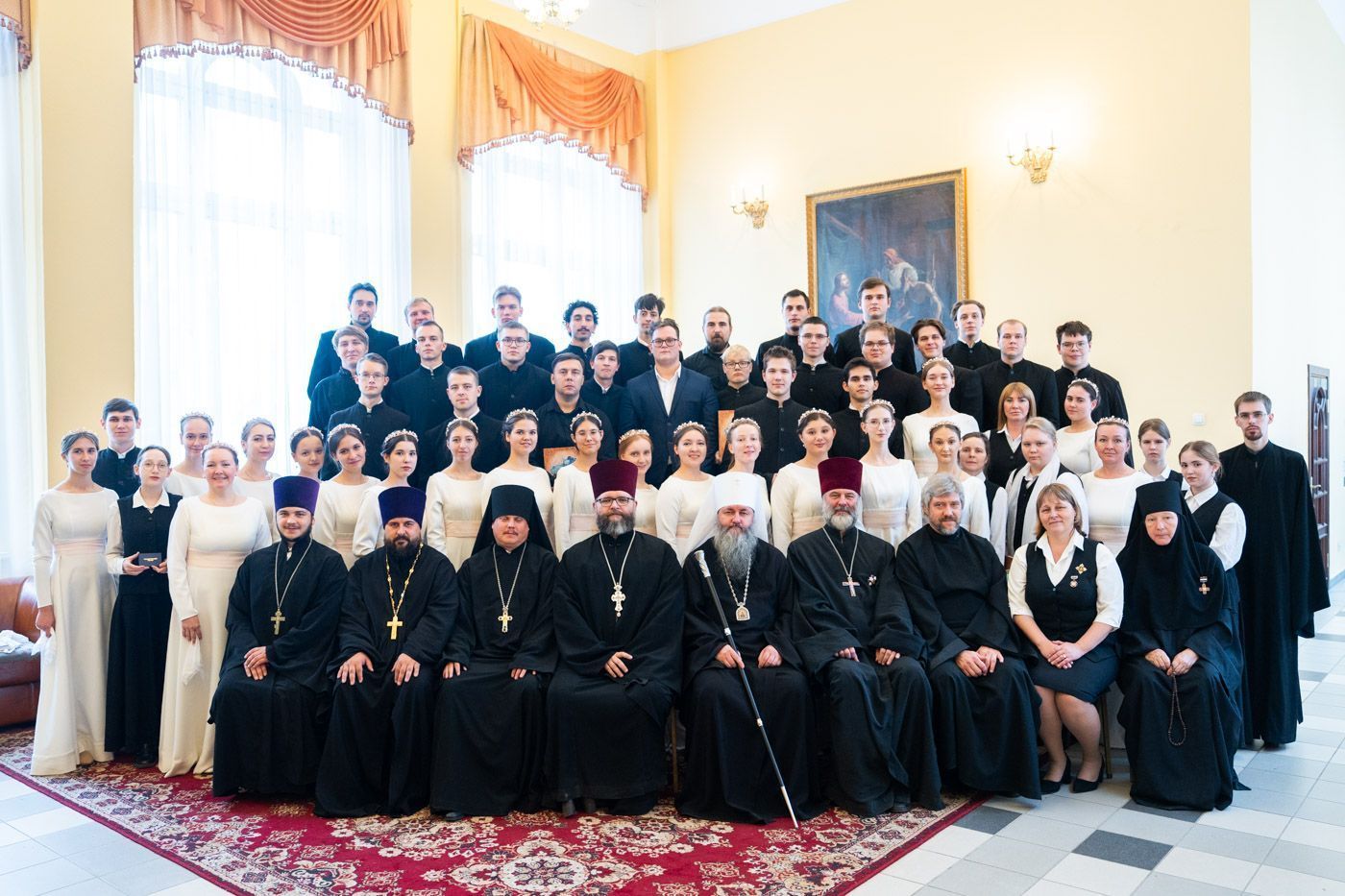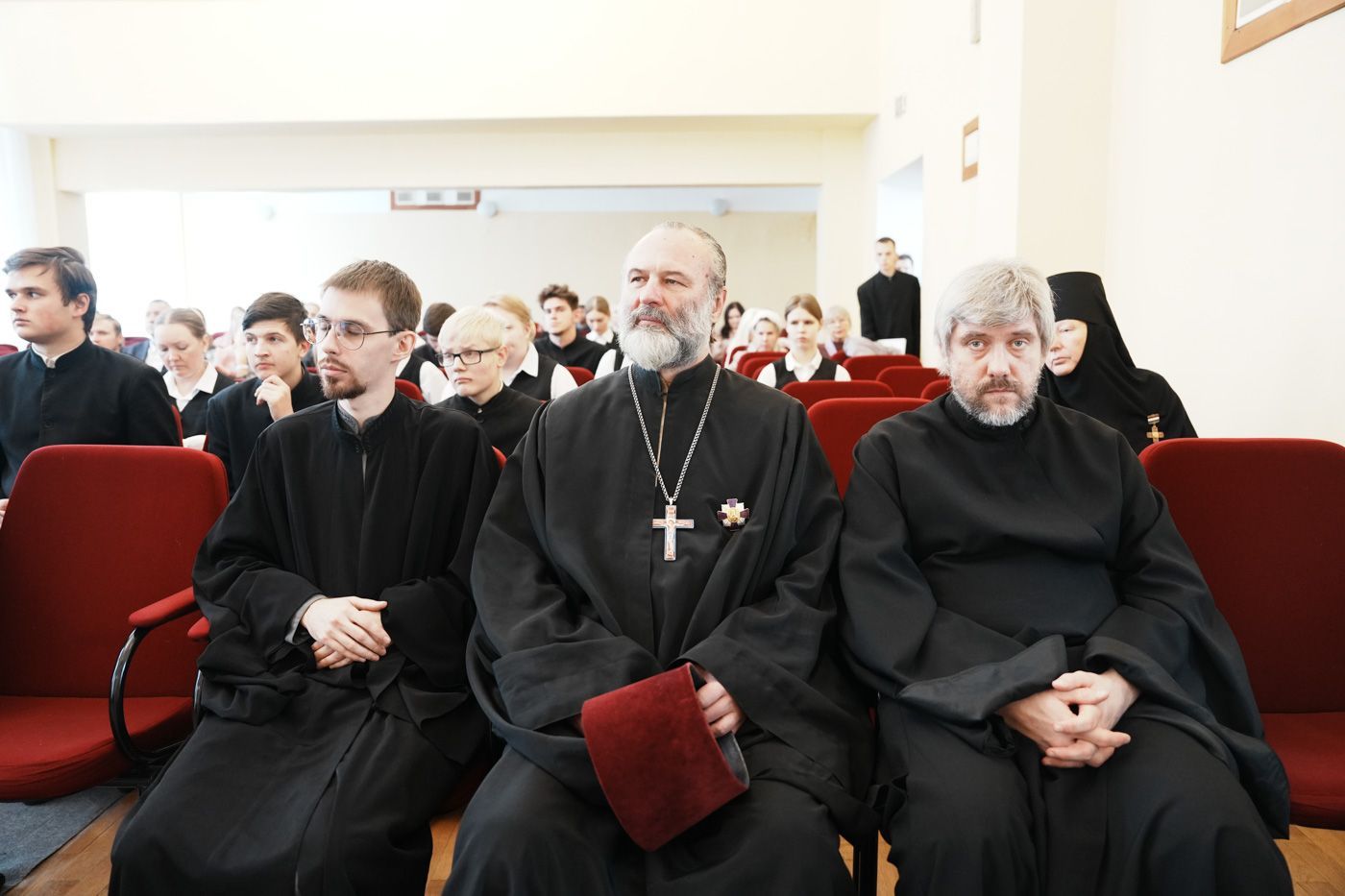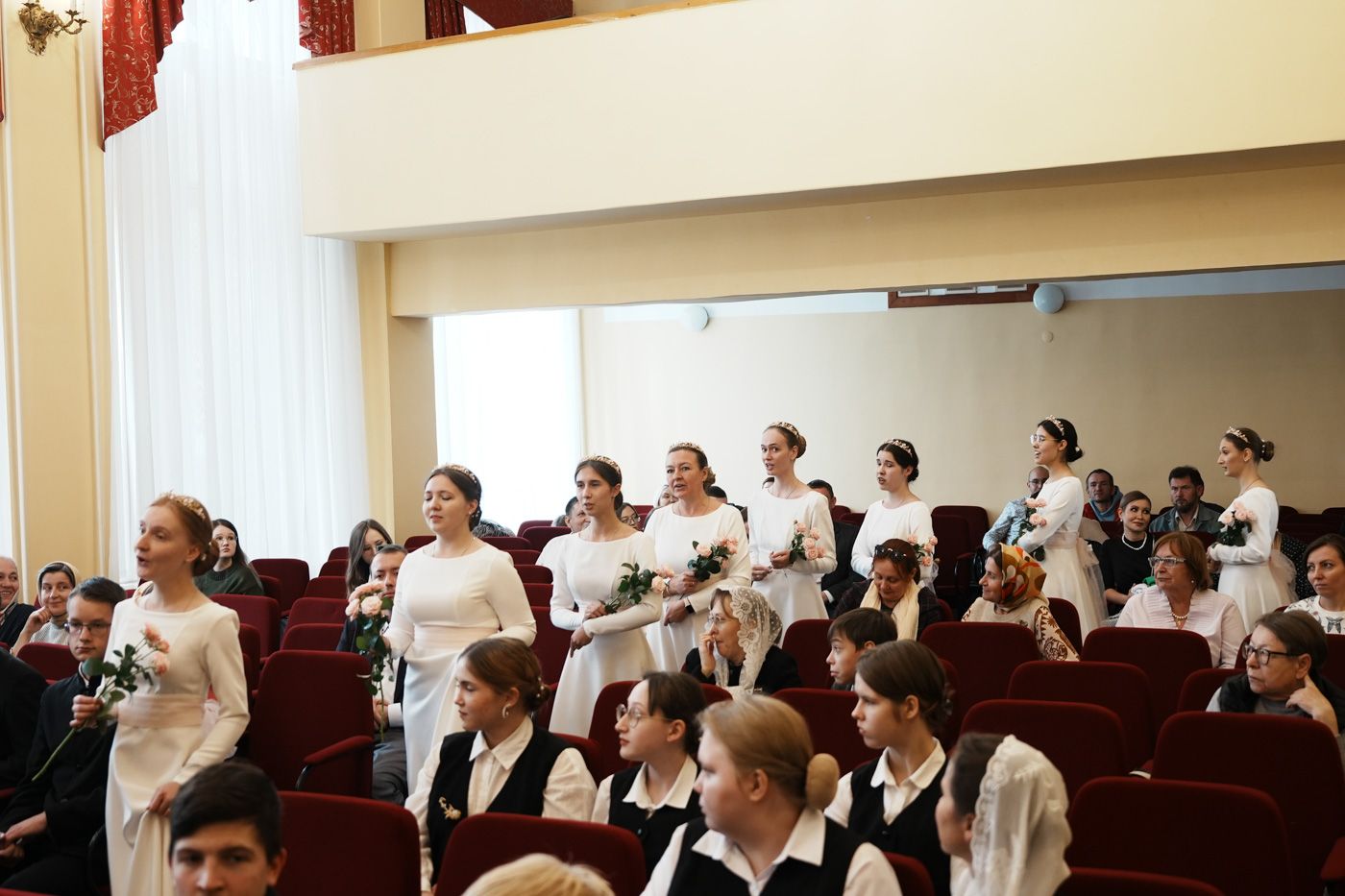 Затем собравшиеся совершили молебен преподобным Кириллу и Марии, а затем торжества продолжилось в актовом зале вручением студенческих билетов первокурсникам и праздничным концертом.