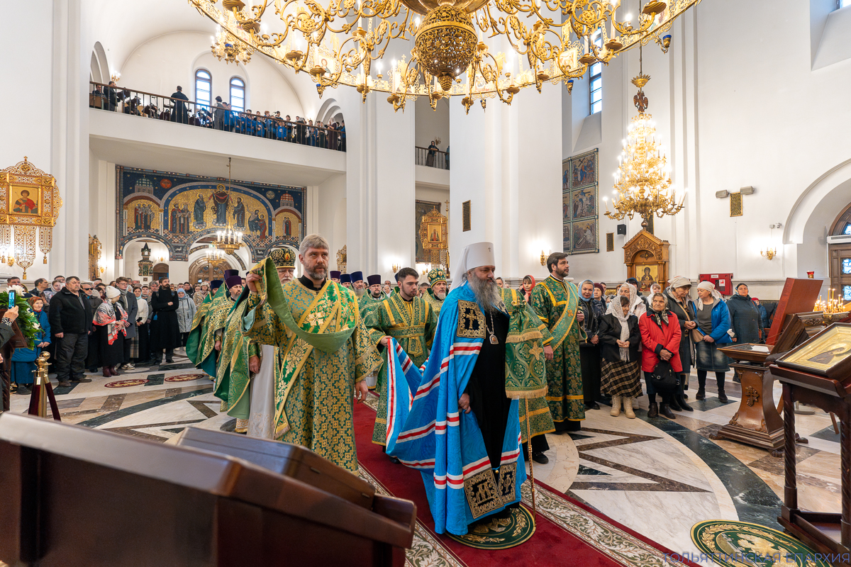 9 ноября 2025 года, в Неделю 22-ю по Пятидесятнице и день памяти преподобного Нестора Летописца Печерского, в Преображенском кафедральном соборе г. Тольятти была совершена соборная Божественная литургия.