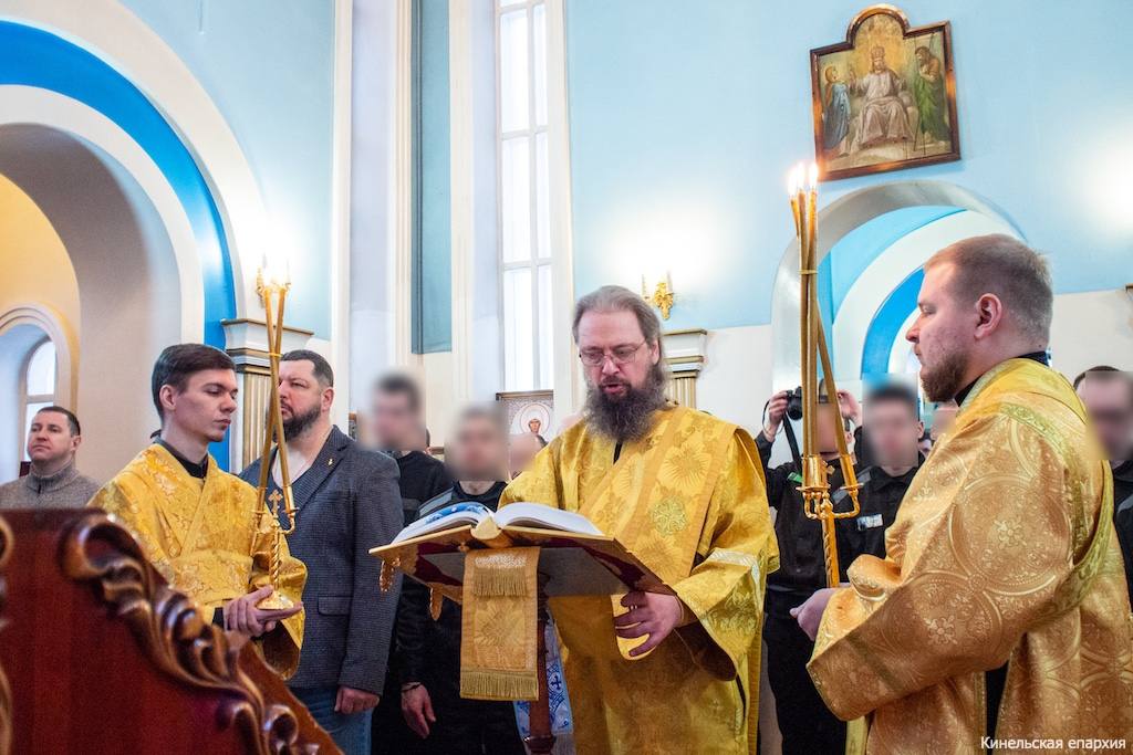 На Литургии молились помощник начальника ФСИН России по Самарской области по организации работы с верующими - Игорь Вознесенский, член правления Благотворитльного фонда просвещения «Вера» - Константин Бобылев, помощник начальника УФСИН России по Самарской области по правам человека - Антон Виндугов.