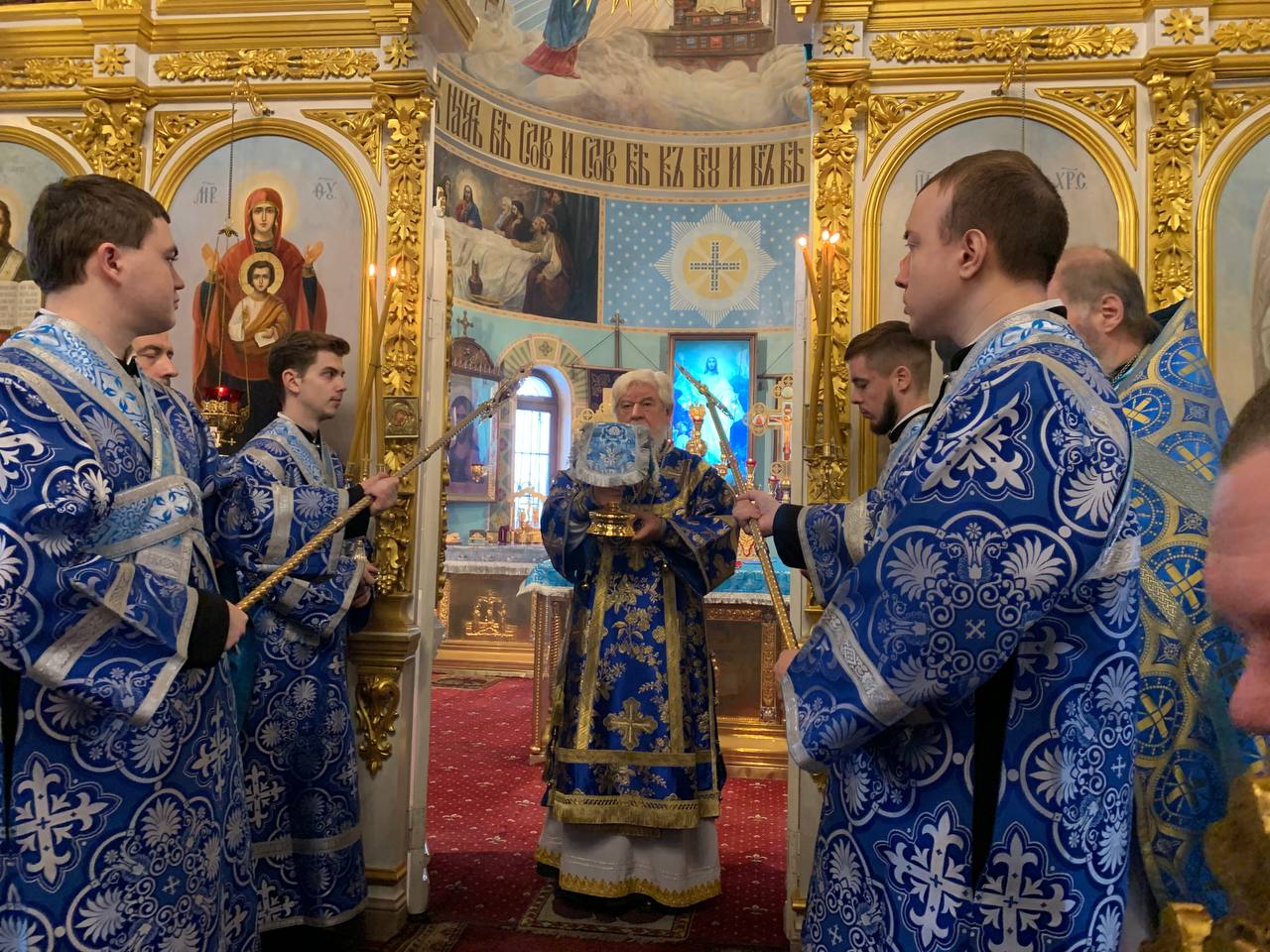 Его Высокопреосвященству сослужили: архимандрит Вениамин (Лабутин), заведующий межвузовской кафедрой теологии и истории религий;