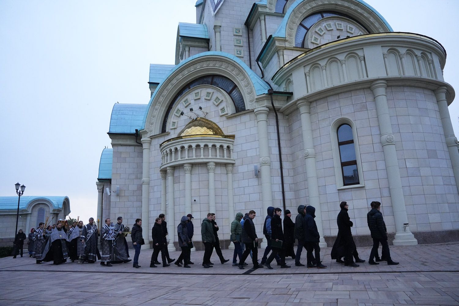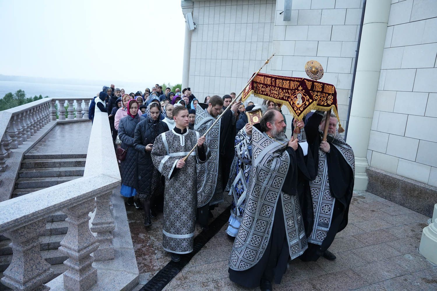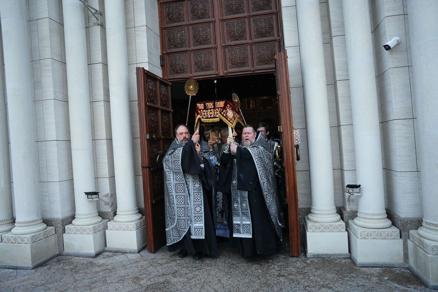 После великого славословия под пение погребального «Святый Боже» был совершен крестный ход с Плащаницей.