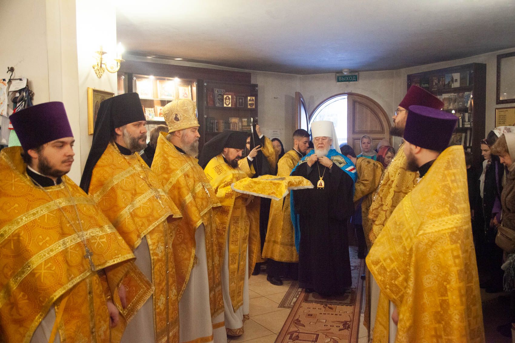 По окончании богослужения Владыка Сергий совершил славление собора новомучеников, после чего настоятель храма иерей Сергий Жихарев приветствовал Владыку поздравительным словом. Затем Митрополит обратился к молящимся с архипастырским словом и благословением.