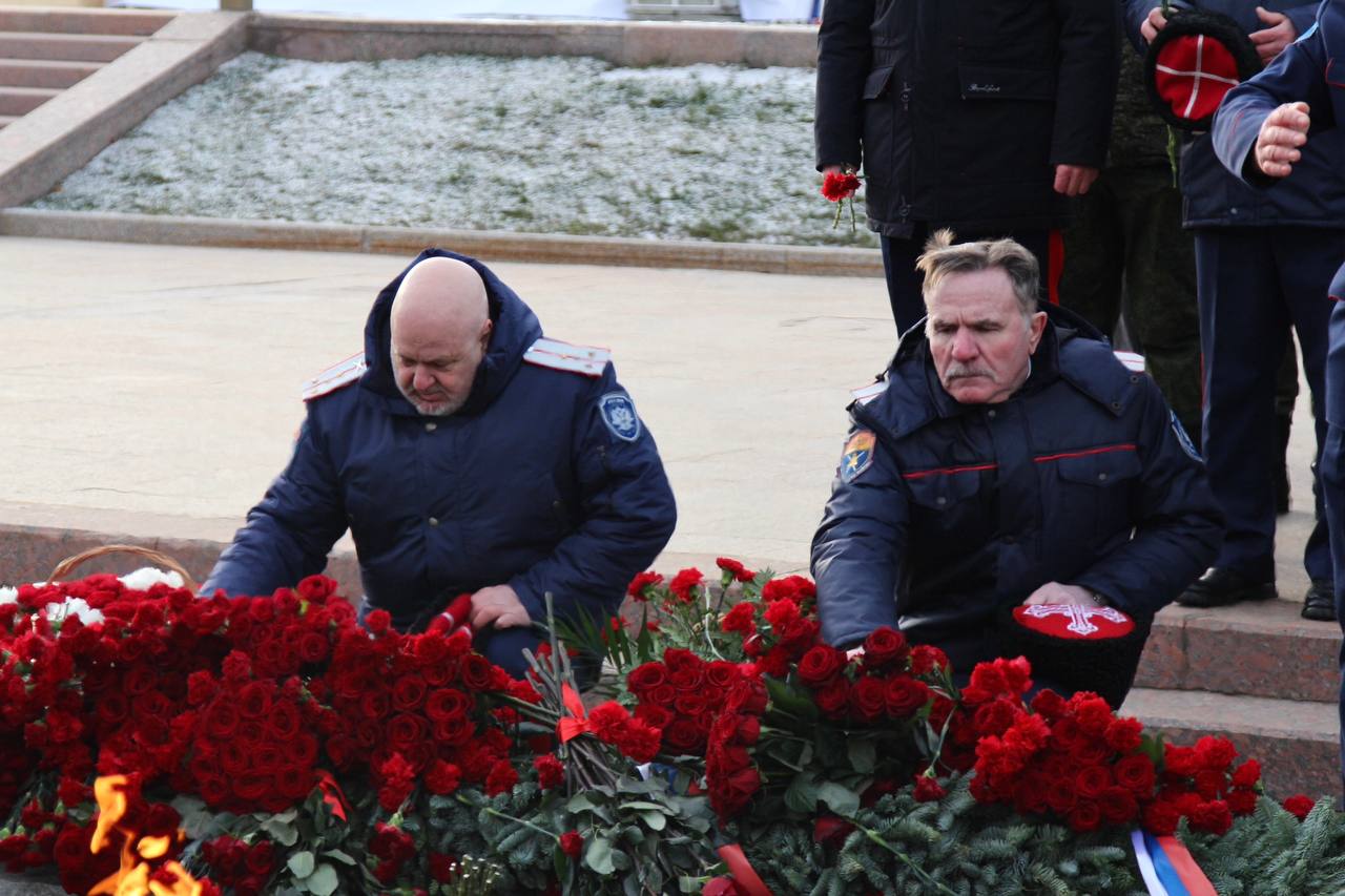 Мероприятие завершилось возложением цветов к горельефу "Скорбящей Матери - Родине".