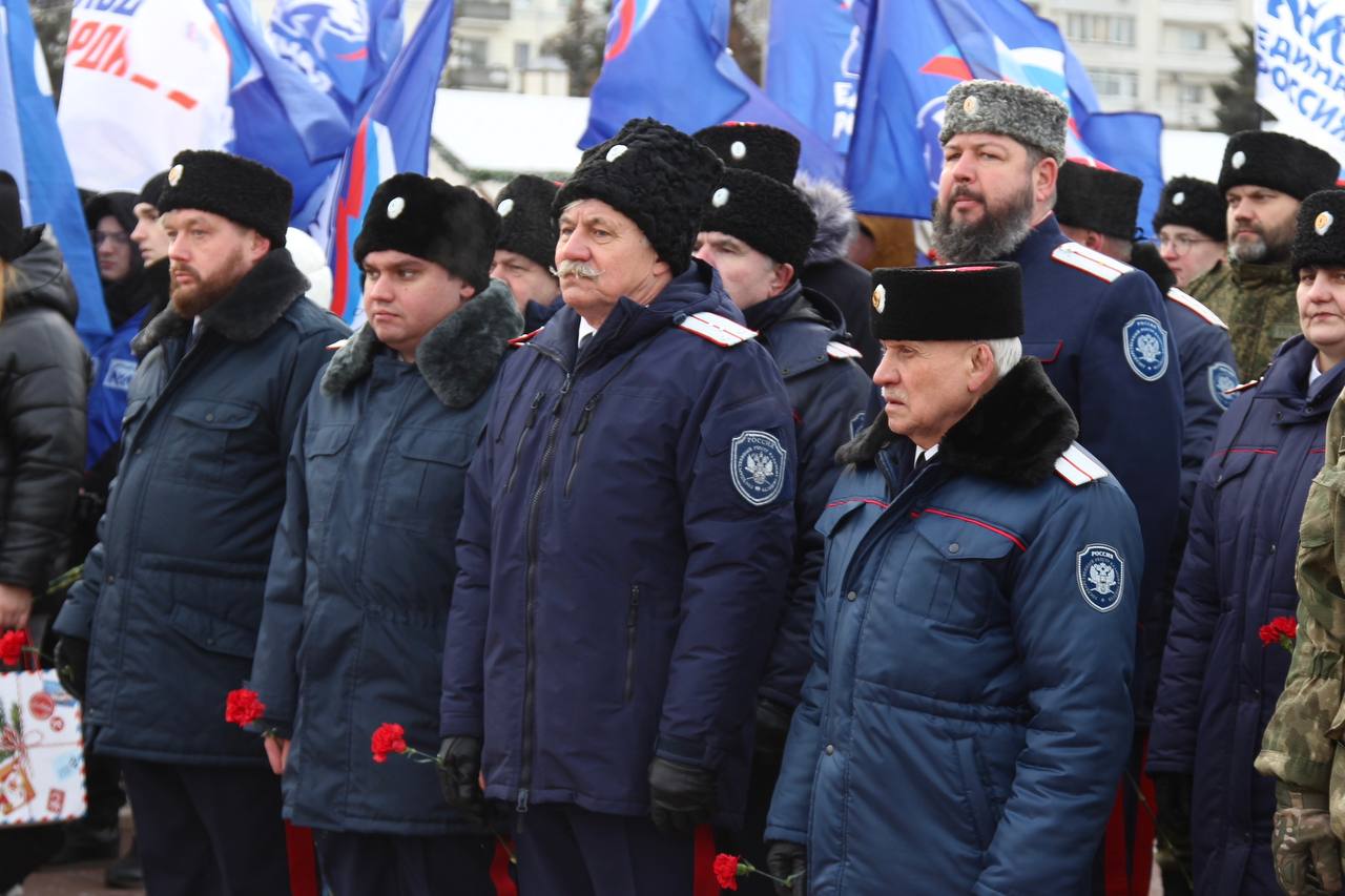 Также ко всем присутствующим обратился атаман Волжского казачьего войска Константин Давитьян; он поздравил всех членов казачьего общества с Днем памяти Георев Отечества и вручил ведомственные награды бойцам казачьего добровольческого отряда БАРС -15 "Ермак" за проявленное мужество на фронте.