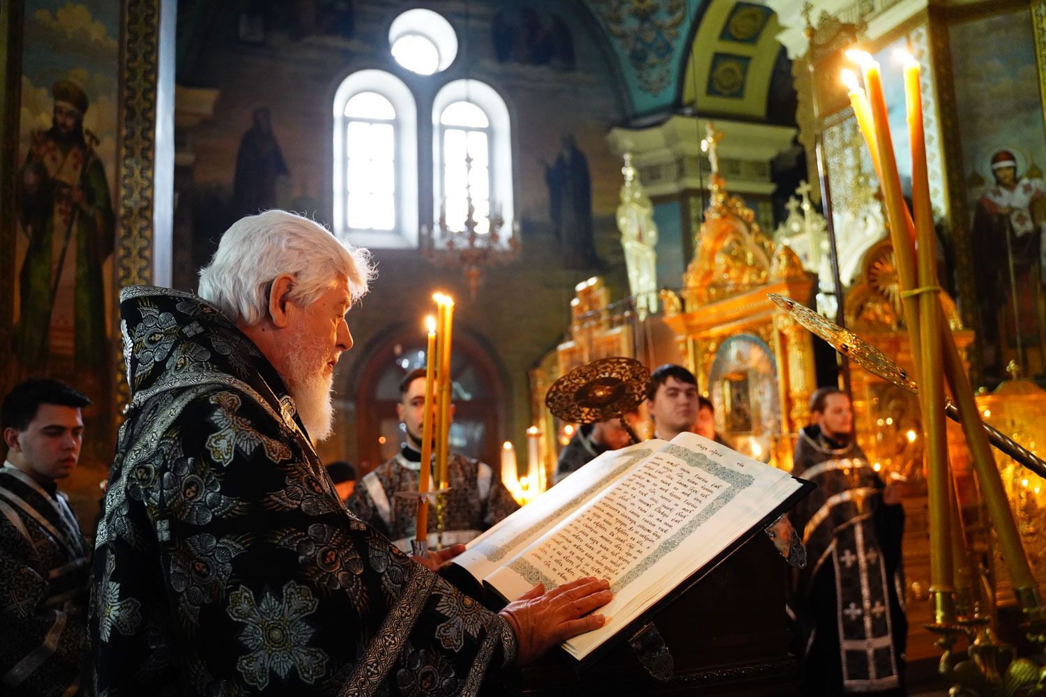 В канун пятницы Страстной седмицы митрополит Сергий совершил утреню с чтением двенадцати Страстных Евангелий