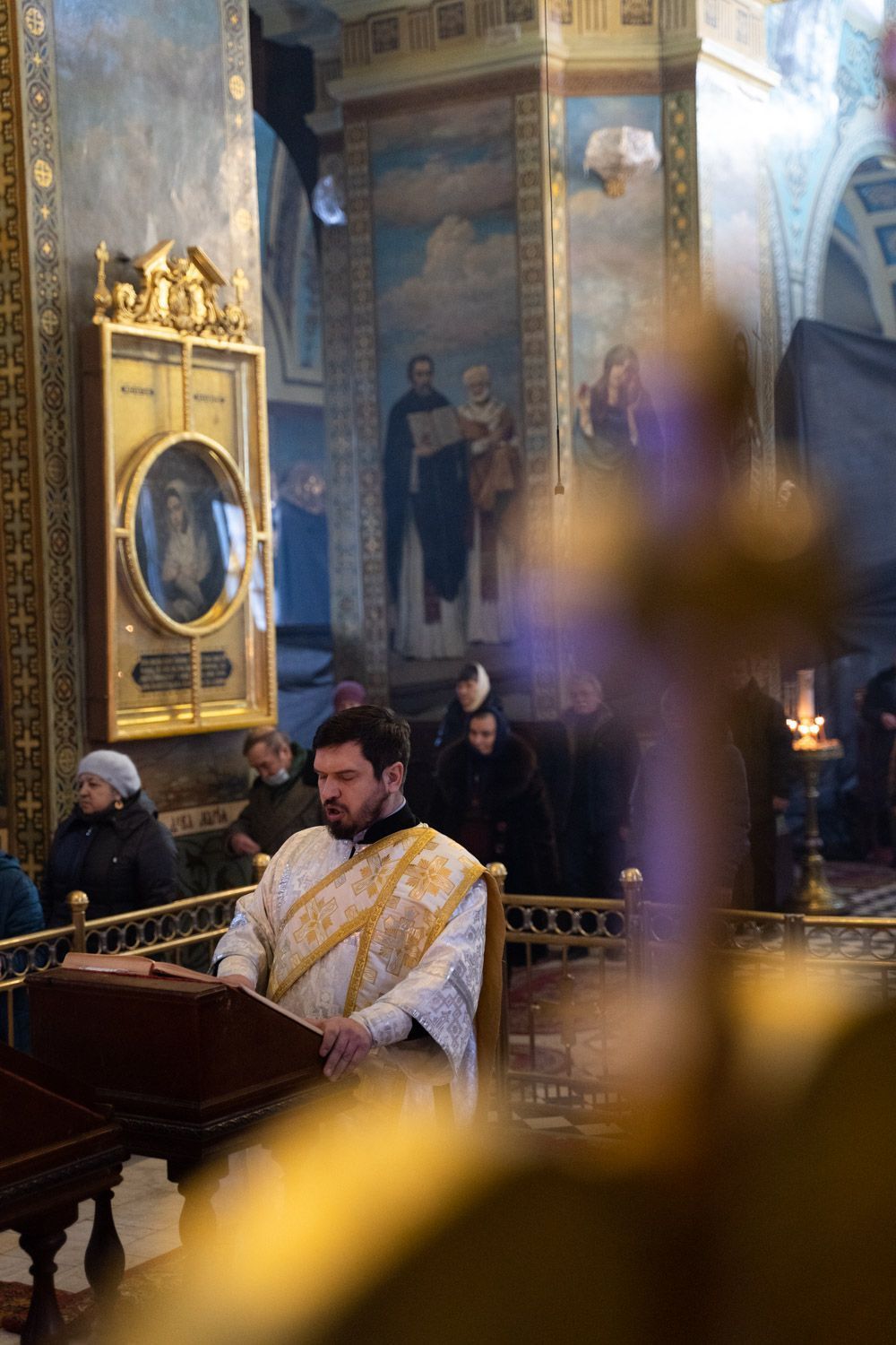 На малом входе за усердное служение Святой Церкви клирик собора священник Александр Шулепов был удостоен права ношения камилавки.