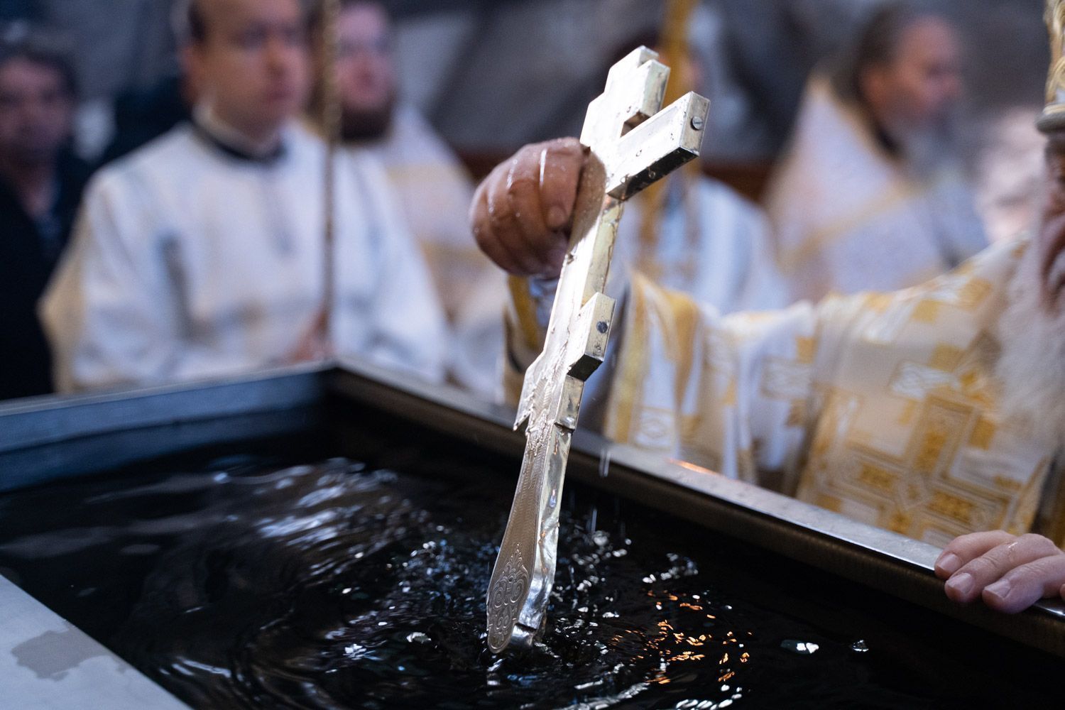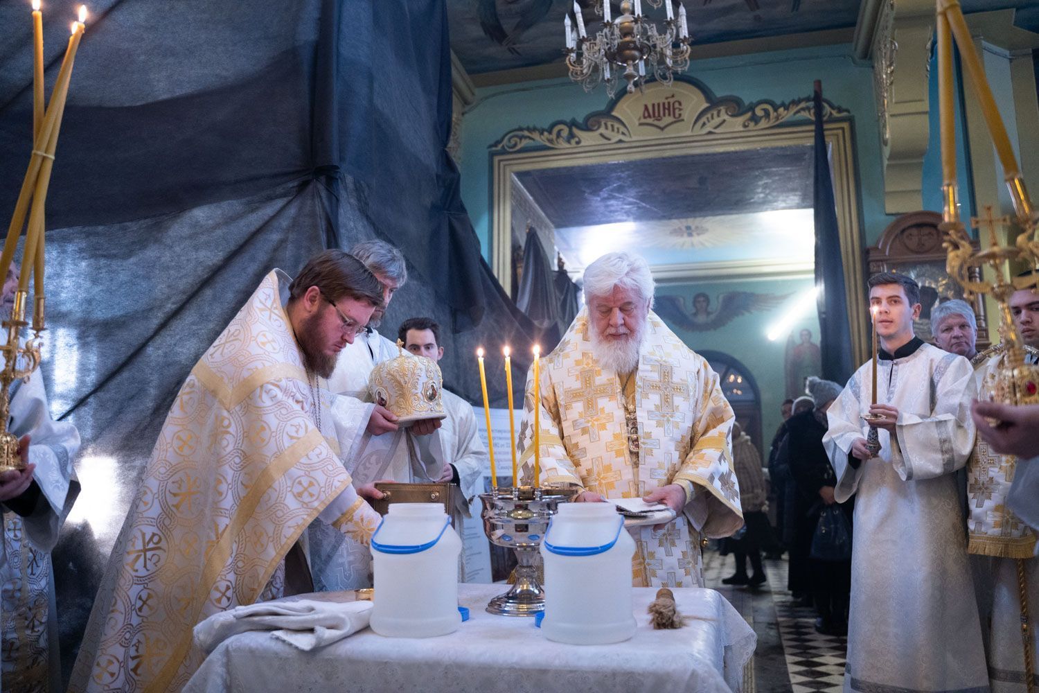 По окончании Литургии владыка совершил чин великого освящения воды.