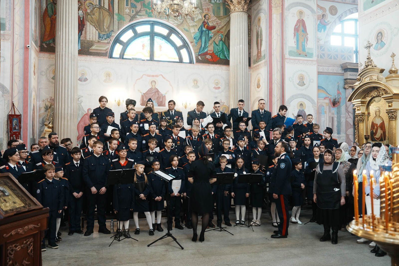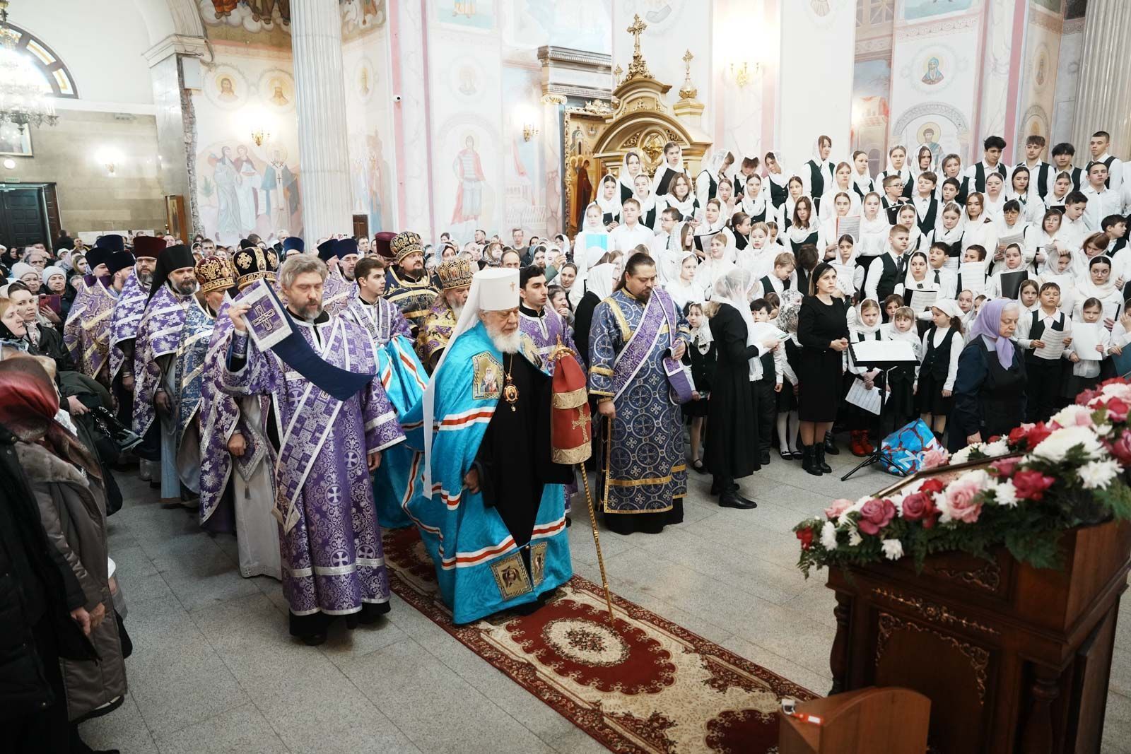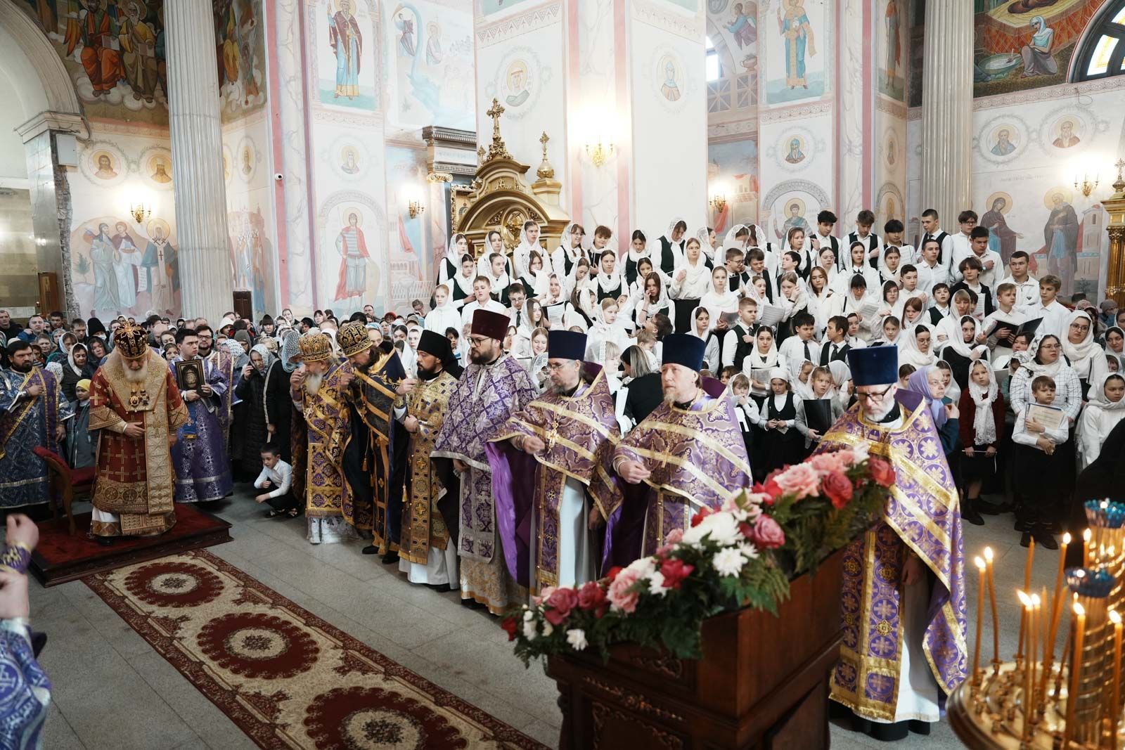 Кроме хора «Благо» в богослужение принял участие сводный хор учащихся кадетских казачьих классов и студентов СЮИ ФСИН под управлением Максима Горельченко. Кадетскому воспитанию в Самарской епархии также уделяется большое внимание. Сочетание духовных основ образования с патриотическим воспитанием позволяет вырастить поколение молодежи, бережно относящихся к своей Родине. В общей сложности в службе приняло участие более ста детей разных возрастов. Ну и конечно же традиционным украшением богослужения в день Торжества Православия стало пение мужского губернского хора «София» под руководством игумена Никона (Ратникова).