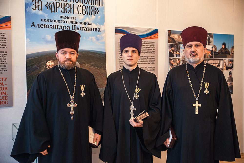 В рамках Года защитника Отечества и в преддверии 80-летнего юбилея победы в Великой Отечественной войне, митрополит Самарский и Новокуйбышевский Сергий в Самарском Епархиальном Церковно - Историческом музее открыл выставку, посвященную выпускнику Самарской Духовной семинарии, полковому священнику, иерею Александру Цыганову, погибшему на СВО осенью 2022 года при исполнении пастырского долга.