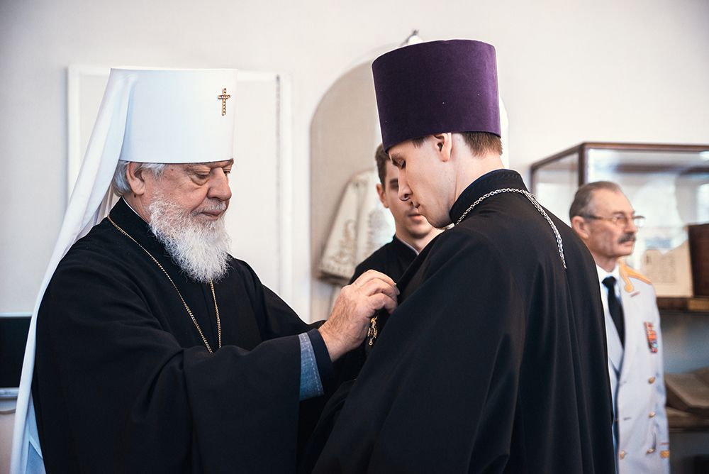 По окончании выставки, митрополит Сергий наградил медалью ордена святого благоверного князя Дмитрия Донского священников которые несут своё служение в зоне СВО:
